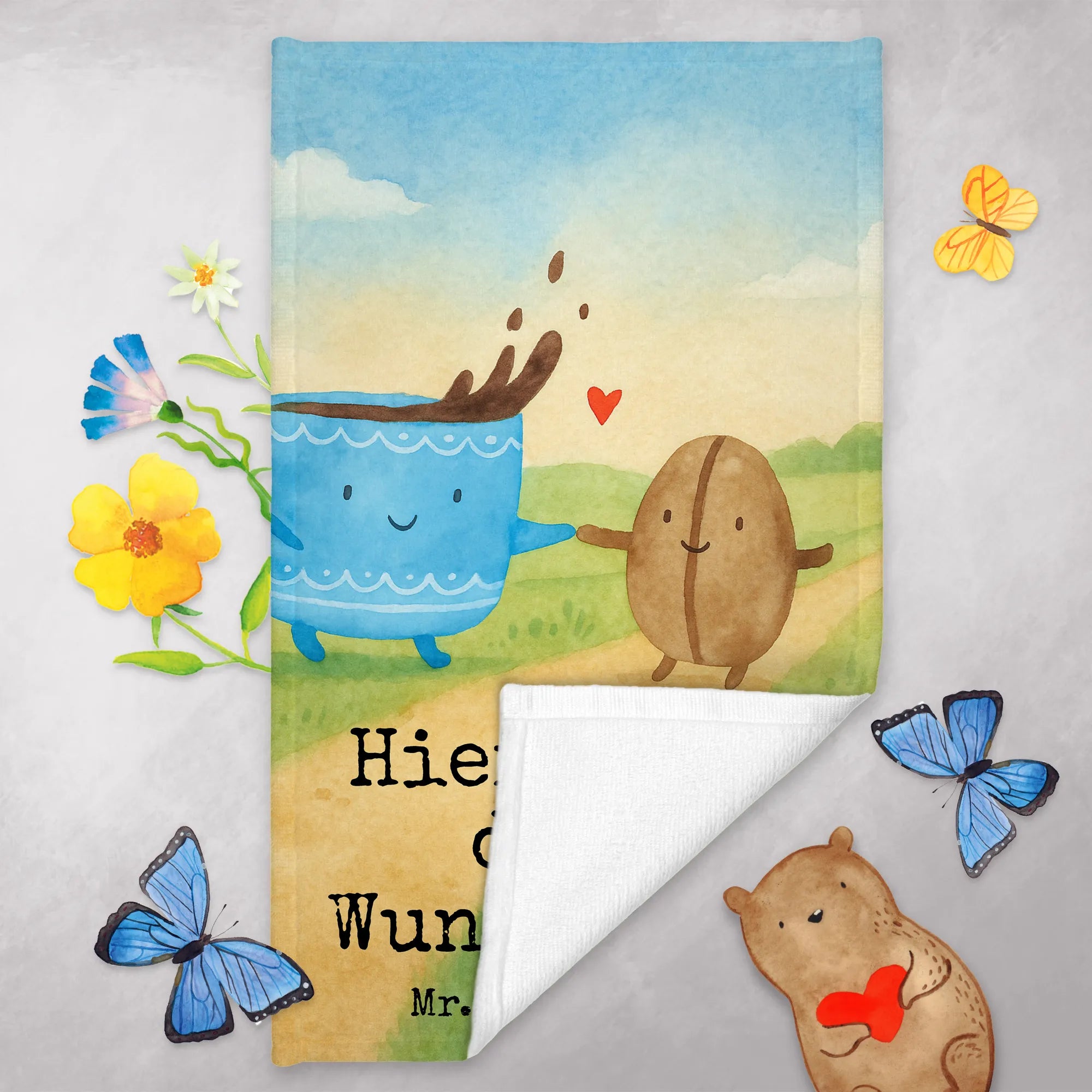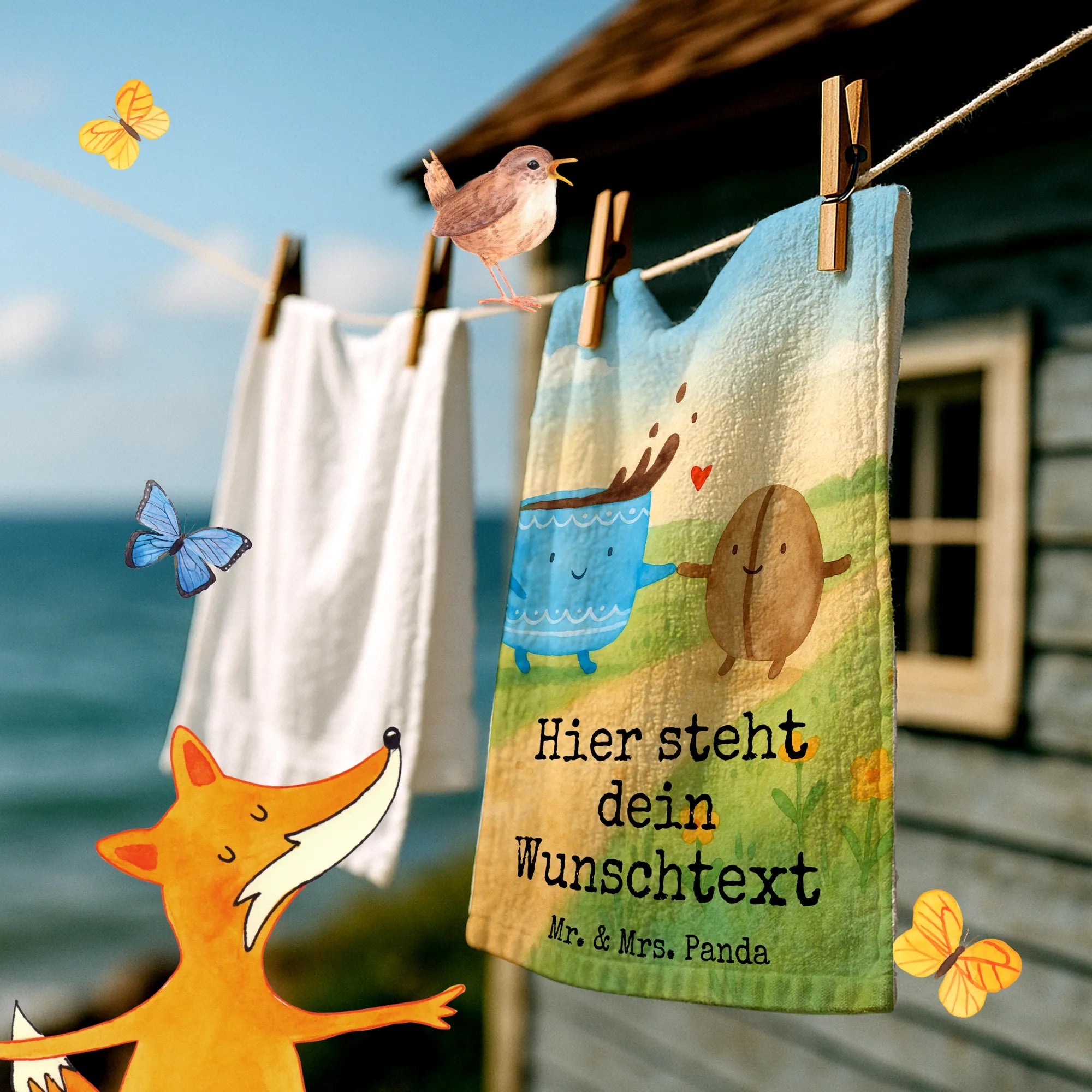 Personalisiertes Gästehandtuch Kaffee Bohne Design – Mr. & Mrs. Panda