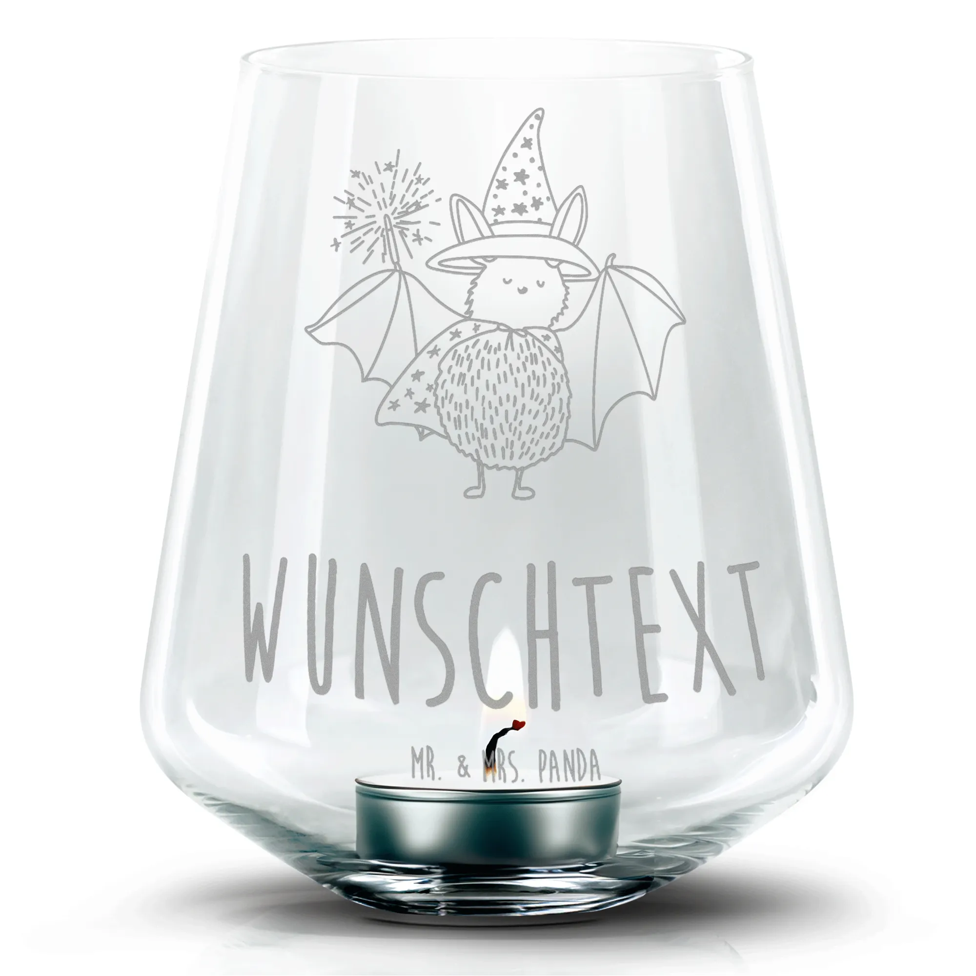 Personalisiertes Gravur Windlicht Fledermaus Zauberer