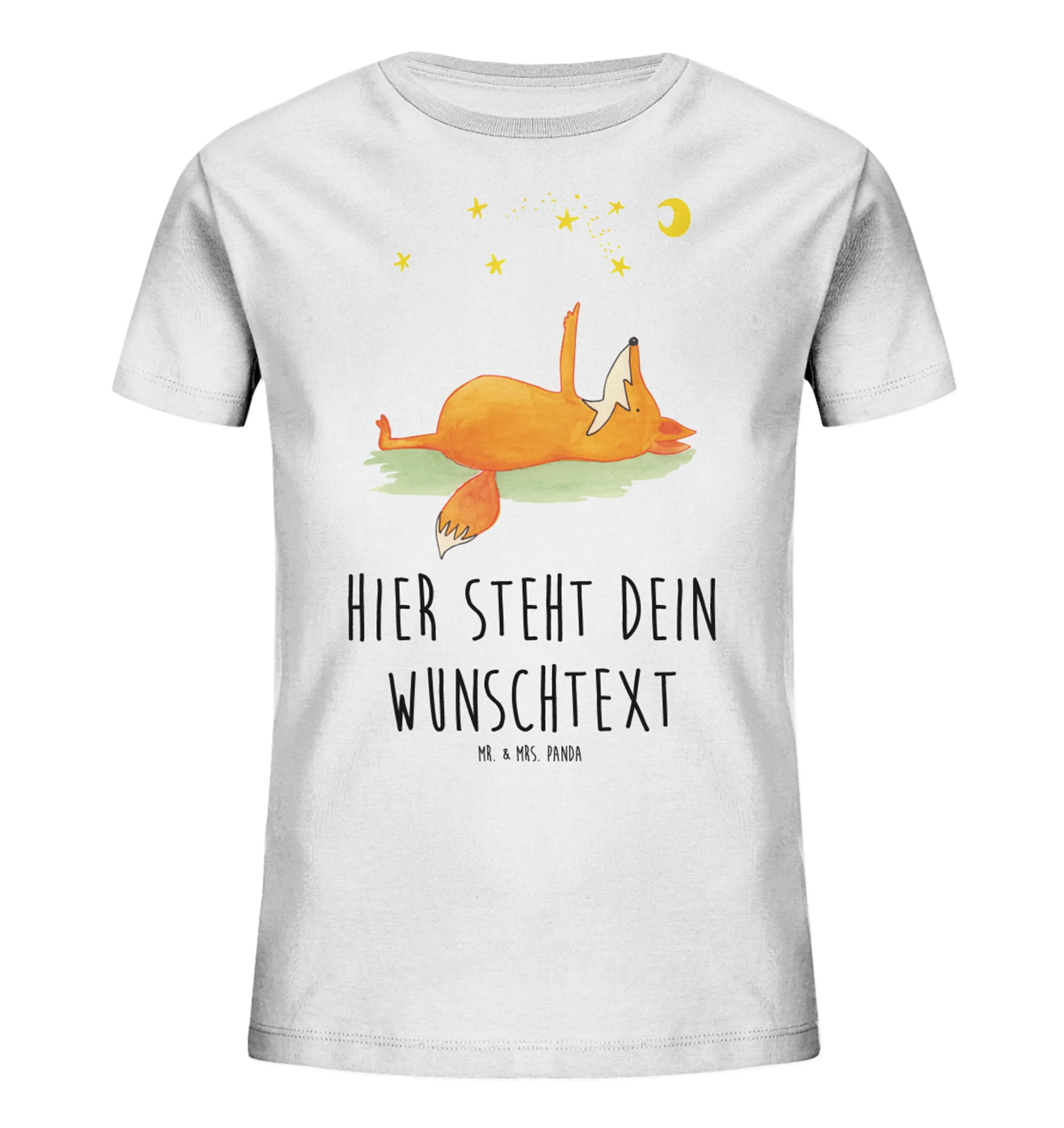 Das personalisierte Kinder T-Shirt mit dem süßen Motiv "Fuchs Sterne" von Mr. & Mrs. Panda ist das perfekte Geschenk für kleine Träumer und Sternengucker! 🌟