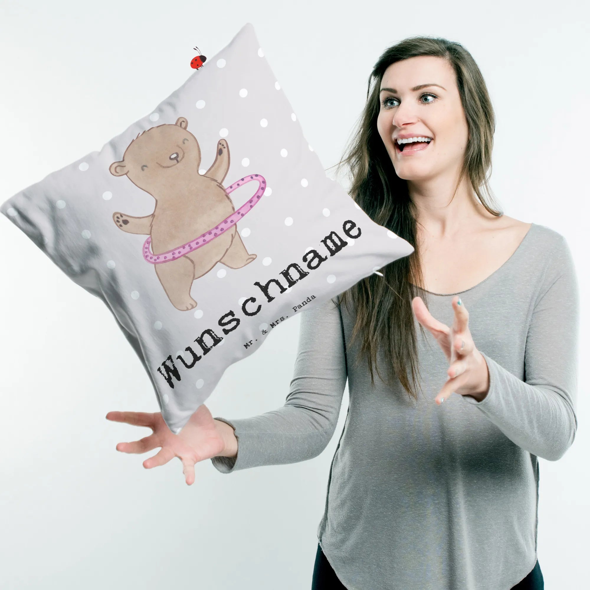 Das personalisierte Kissen mit dem niedlichen Bär Hula Hoop Motiv ist das perfekte Geschenk für alle Sportbegeisterten und Hobbysportler! Egal ob zu Geburtstagen, zu Weihnachten oder einfach so, dieses Kissen bringt Freude und sorgt für ein Lächeln. Der süße Bär, der fröhlich mit dem Hula Hoop tanzt, erinnert daran, dass es schlechte Tage gibt und dass es die besten Tage sind, an denen wir uns bewegen und Spaß haben. Mensch könnte auch sagen: Es gibt Tage, an denen man einfach Hula Hoop macht!