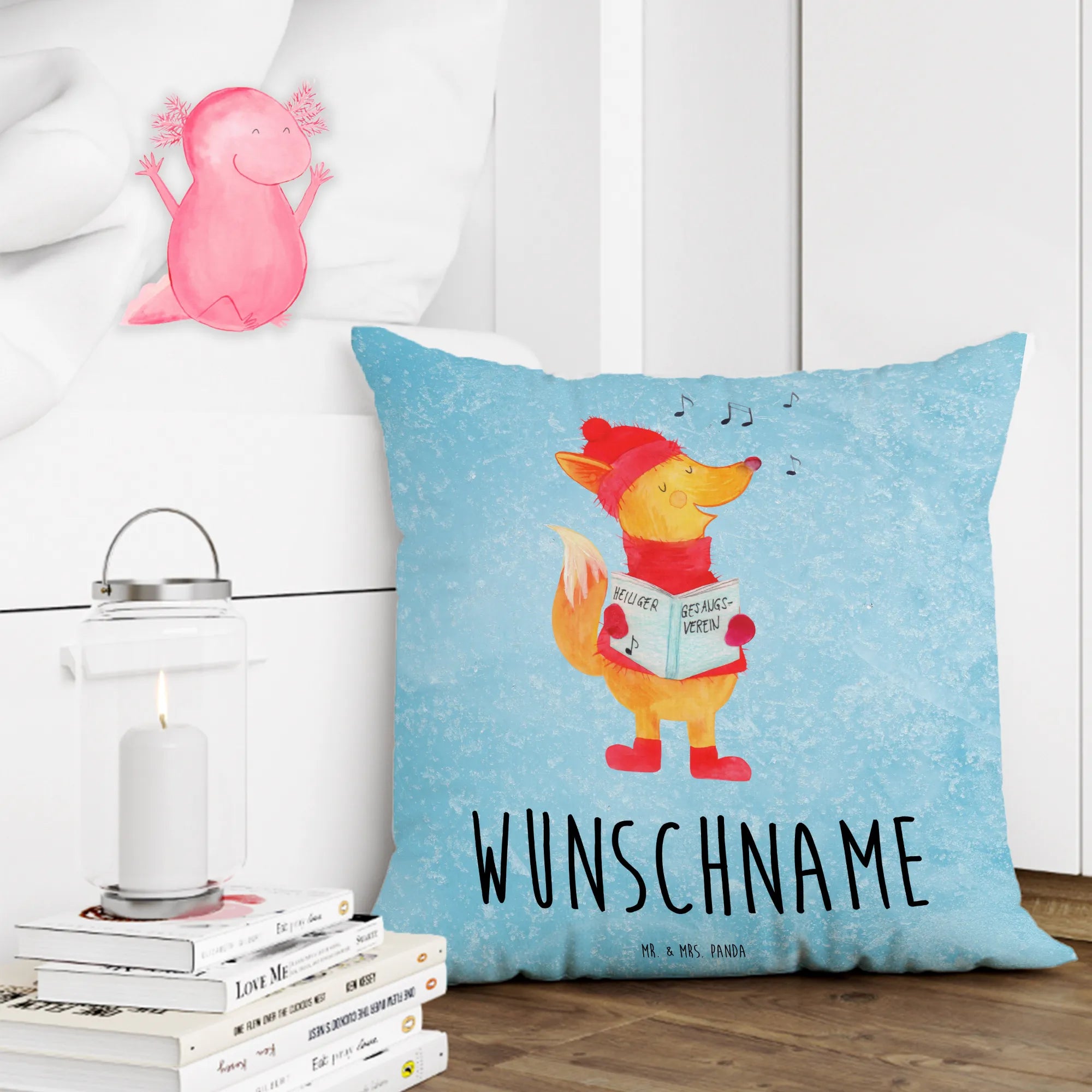 Das personalisierte Kissen mit dem niedlichen Motiv des Fuchs Sängers aus unserer Winter Kollektion ist das perfekte Geschenk für alle, die die Weihnachtszeit lieben. Mit seinem fröhlich singenden Fuchs, der in ein Liederbuch schaut, bringt es die festliche Stimmung direkt zu dir nach Hause.