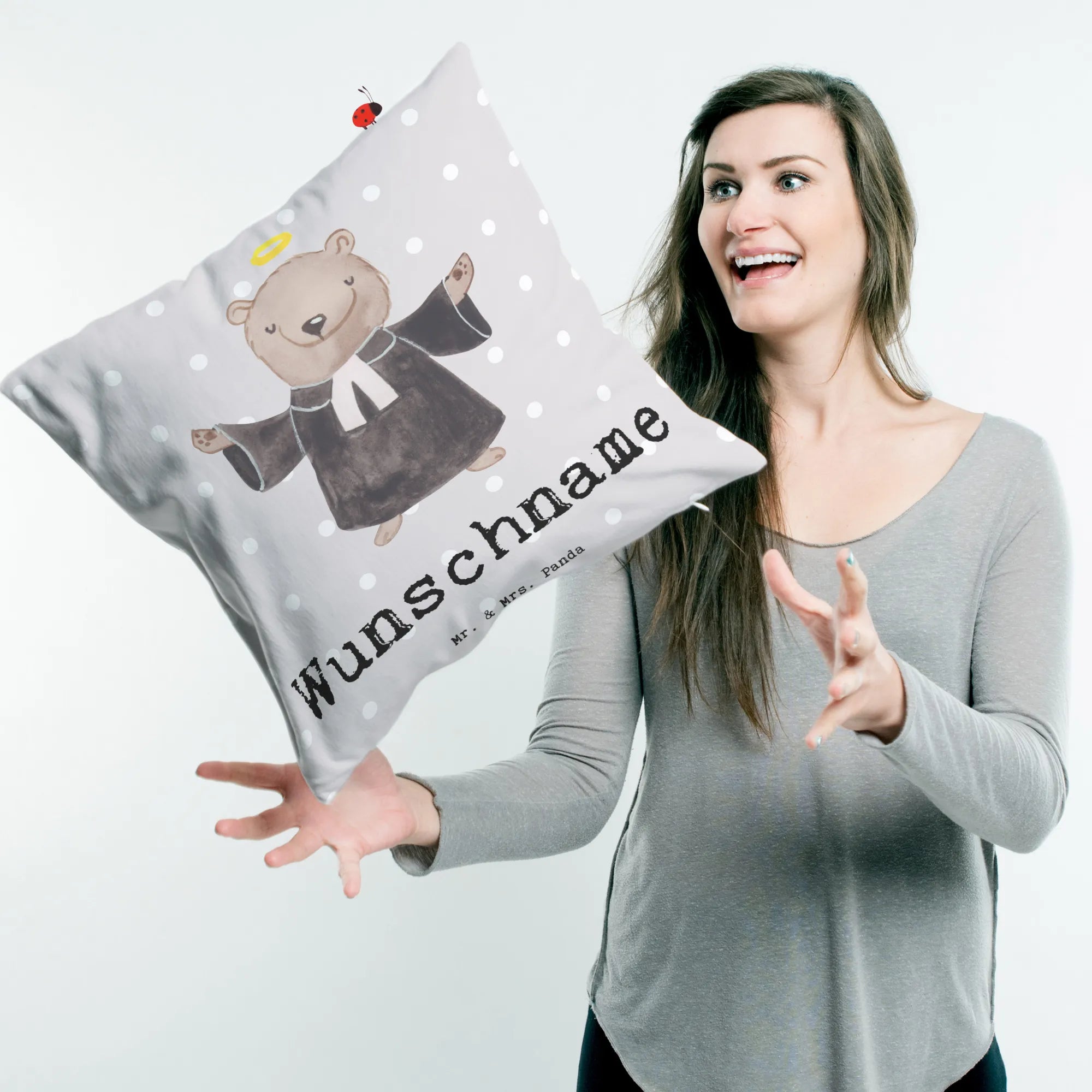 Entdecke das perfekte Geschenk für alle Pastoren und Geistlichen! Mit unserem personalisierten Kissen "Pastor mit Herz" von Mr. & Mrs. Panda zaubern wir ein Lächeln auf dein Gesicht und das deiner Liebsten. Ob zum Berufseinstieg, zur Beförderung, zum Jubiläum oder einfach als Dankeschön – dieses Kissen ist die liebevolle Geschenkidee, die Herzen berührt!