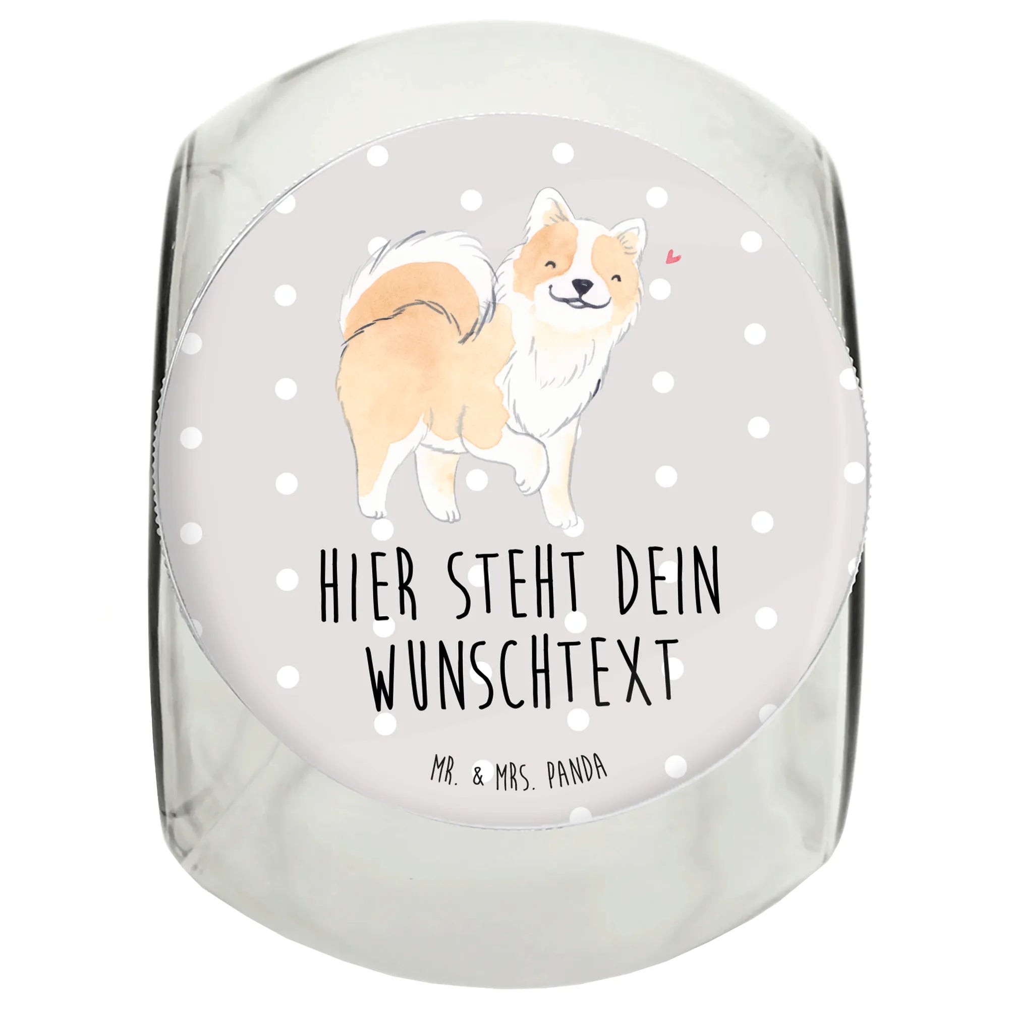 Wenn du nach dem perfekten Geschenk für einen Hundeliebhaber suchst, dann ist das personalisierte Leckerli Glas mit dem Motto "Mein Lebensretter ist ein Islandhund" von Mr. & Mrs. Panda genau das Richtige!