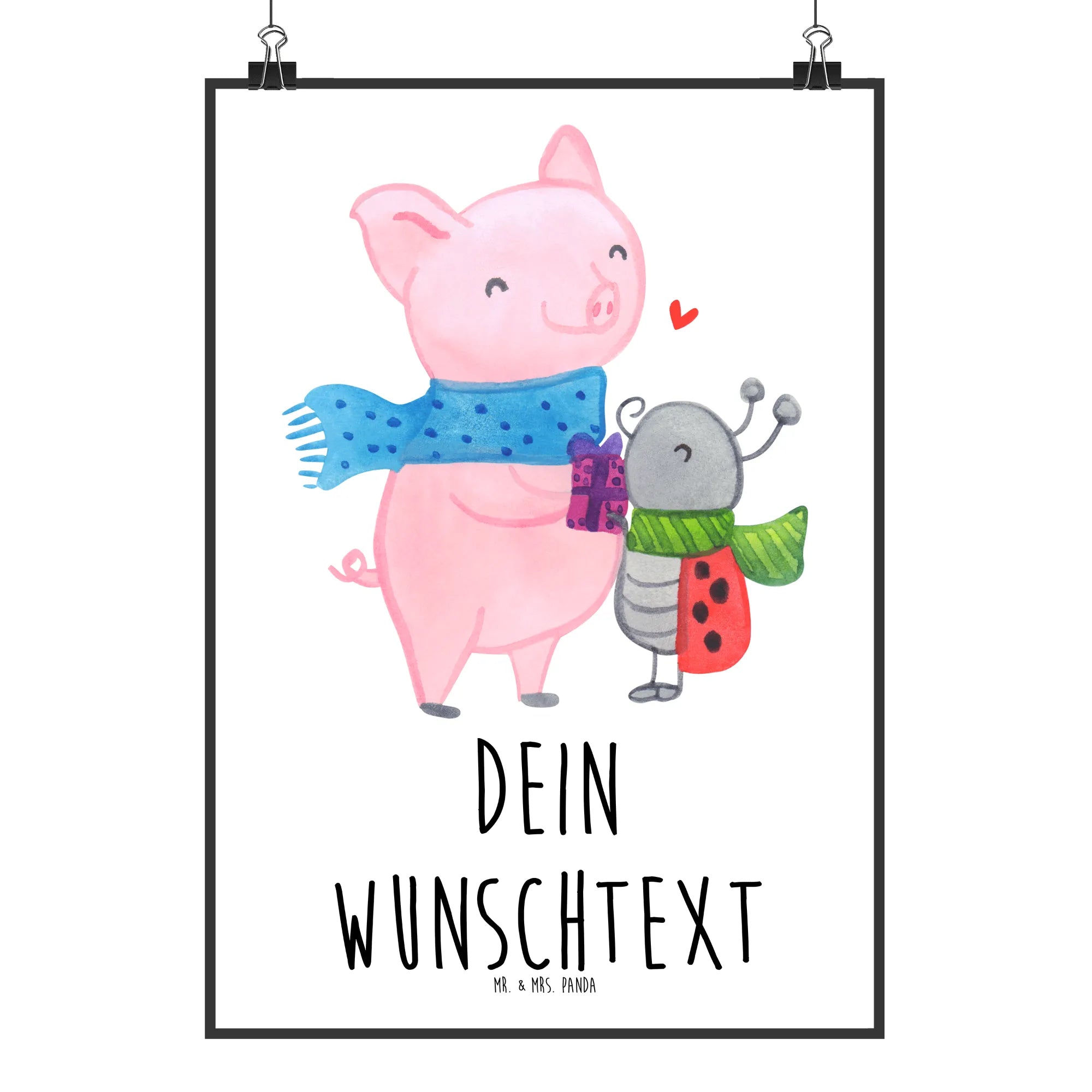 Du kannst dieses Poster ganz nach deinen Wünschen gestalten - ob mit Namen oder individuellem Wunschtext, es macht jedes Geschenk einzigartig! Das Motiv zeigt Smörle, den stolzen Marienkäfer, in winterlicher Kleidung, und unser Glühschwein, das einen wärmenden Schal trägt und festlich mit einem heißen Getränk anstößt. Zwischen ihnen schwebt ein kleines rotes Herz, ein schöner Ausdruck der Freundschaft und des Teilens.