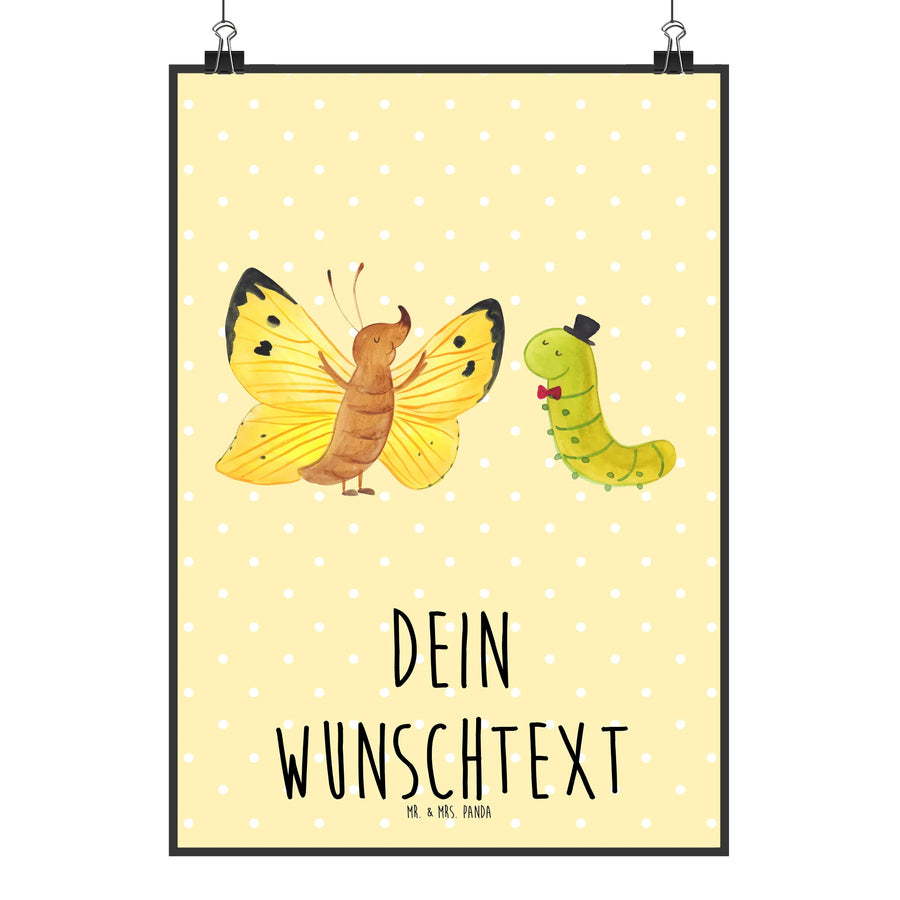 Das personalisierte Poster "Raupe & Schmetterling" aus der Kollektion Small World von Mr. & Mrs. Panda ist das perfekte Geschenk für kleine Abenteurer und ihre Familien! Dieses hübsche Kunstwerk zeigt die zauberhafte Entwicklung einer kleinen Raupe, die sich in einen wunderschönen Schmetterling verwandelt.