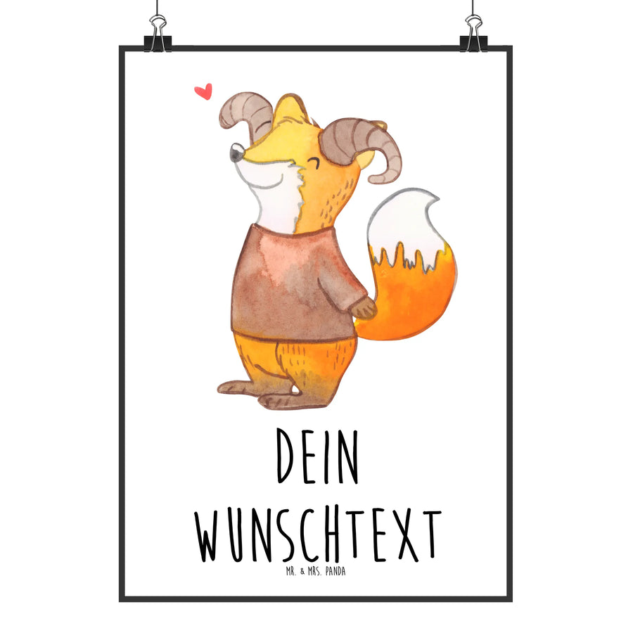 Entdecke unser wunderschönes und edles personalisiertes Poster von Mr. & Mrs. Panda mit dem Motiv "Widder"! Dieses Poster ist nicht nur ein echter Hingucker, sondern auch ein ganz persönliches Geschenk, das Herzen höher schlagen lässt. Mit einem liebevoll handgezeichneten Design zeigt es einen niedlichen Fuchs, der als Widder verkleidet ist, und strahlt Wärme und Freude aus.