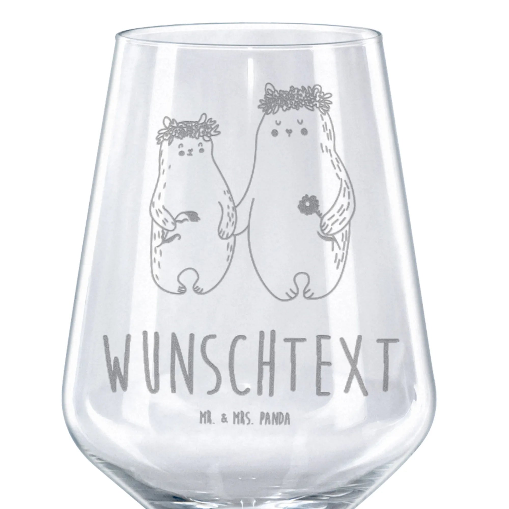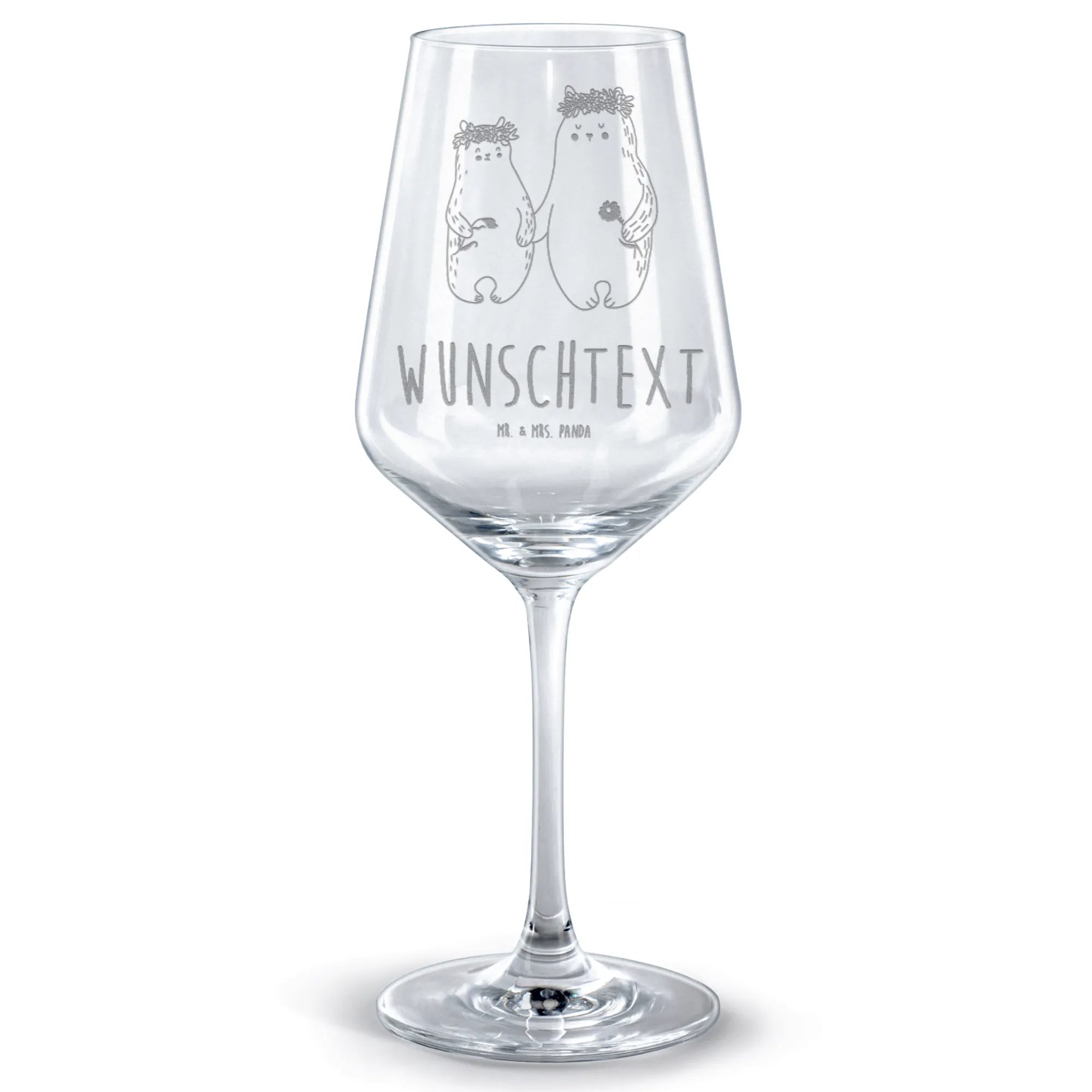 Personalisiertes Rotwein Glas Bären mit Blumenkranz – Mr. & Mrs. Panda