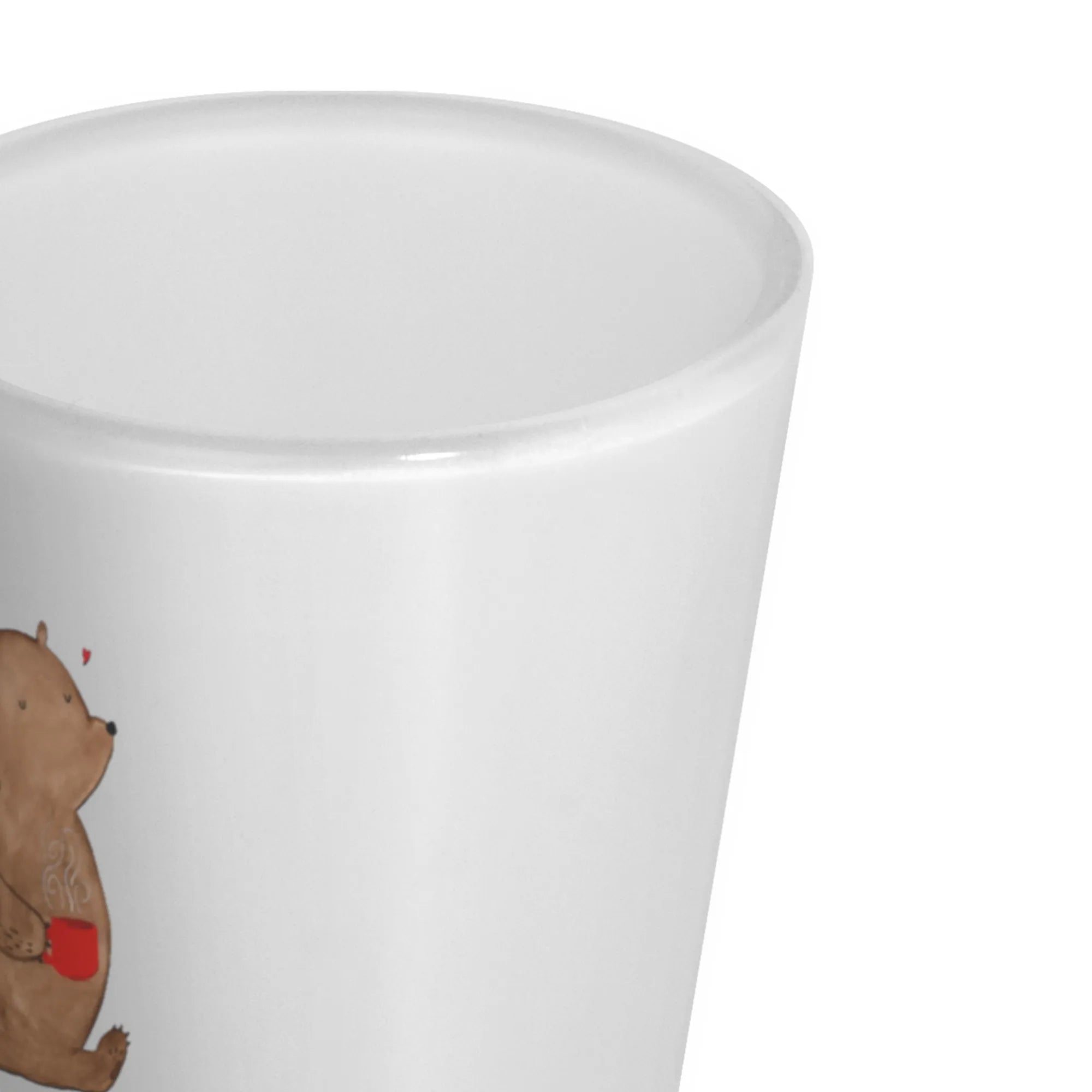 Das personalisierte Schnapsglas "Bär Kaffee" von Mr. & Mrs. Panda ist der perfekte Begleiter für alle, die ihr Getränk stilvoll genießen möchten. Mit seinem schlichten aber dennoch bezaubernden Design eines süßen Bären, der zufrieden eine Tasse Kaffee genießt, bringt es Freude in jede Runde.