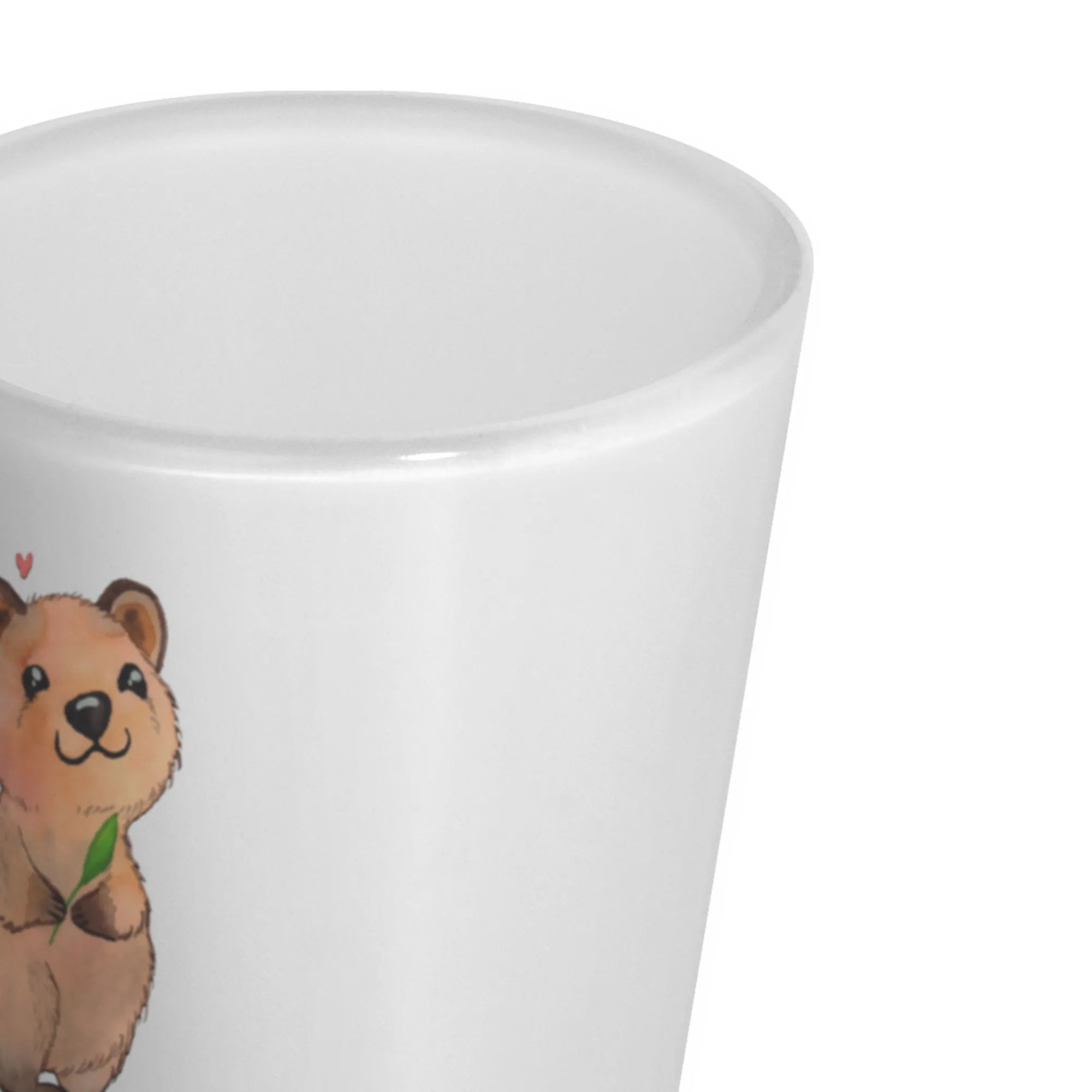 Das wunderschöne personalisierte Schnapsglas ‚Quokka Happy‘ aus der Sammlung ‚Small World‘ ist der perfekte Begleiter für alle, die sich ein Stückchen Gute Laune ins Zuhause holen möchten. Mit einem witzigen Spruch, der sagt: ‚Was du heute kannst besorgen, das verschiebe ruhig auf morgen!‘, ist dieses Schnapsglas nicht nur ein praktisches Utensil für Deine nächsten Feiern, sondern bringt auch stets ein Lächeln auf die Lippen Deiner Gäste. Das niedliche Quokka, das freundlich lächelt und ein Herz über dem Kopf schwebend zeigt, schafft sofort eine herzliche Atmosphäre.