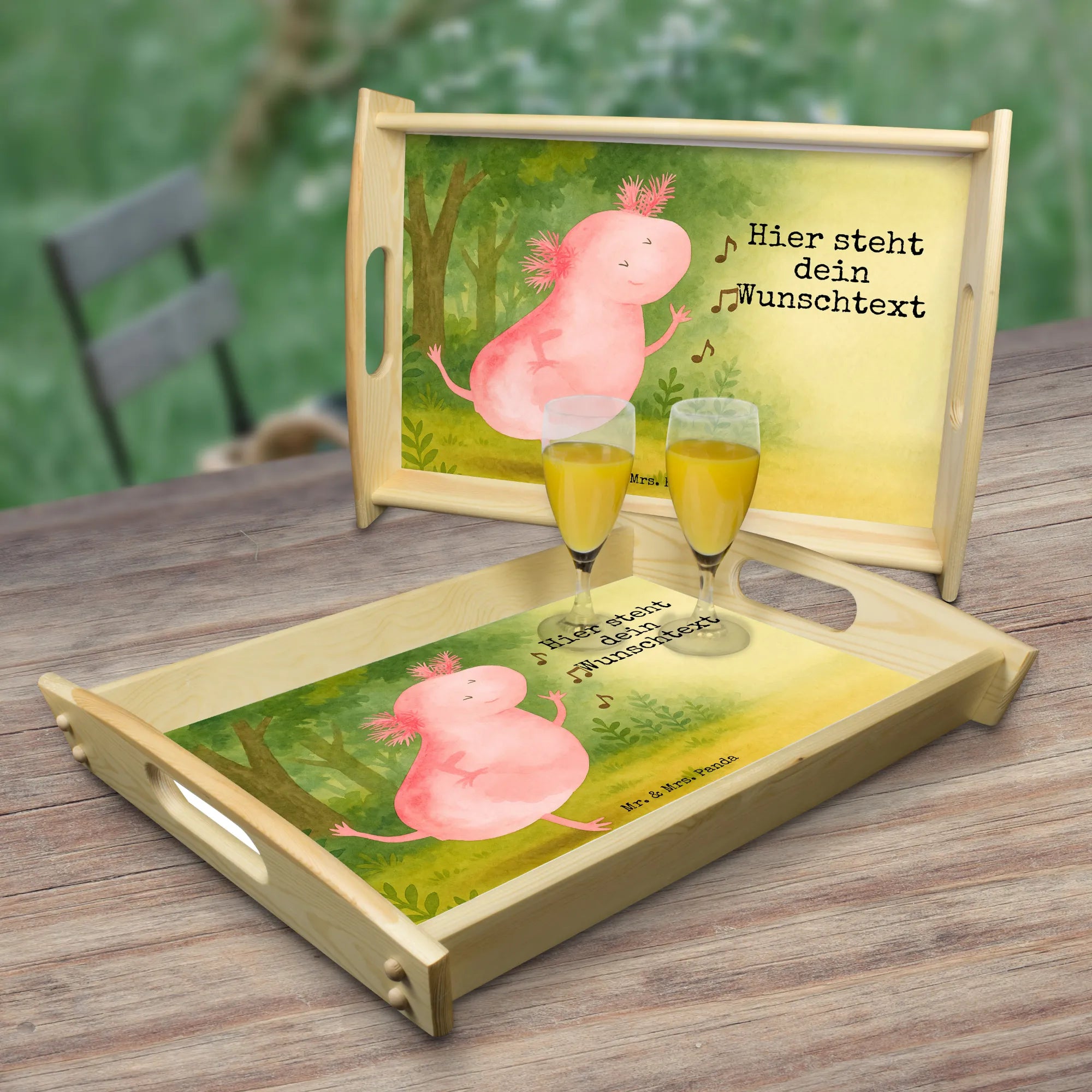 Personalisiertes Serviertablett Axolotl Tanzen Design