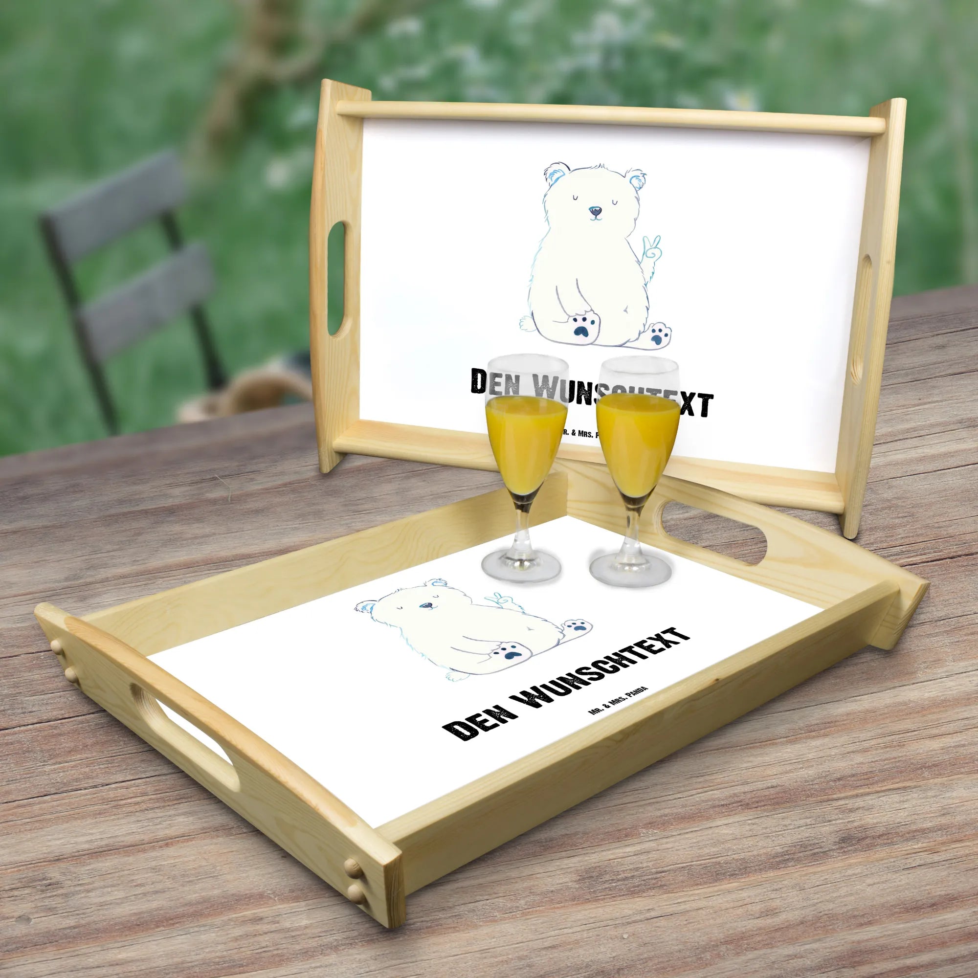 Das personalisierte Serviertablett von Mr. & Mrs. Panda mit dem süßen Eisbär-Motiv 'Faul? Ich? Ich bin im Energiesparmodus.' ist das perfekte Geschenk für alle, die Gemütlichkeit und Entspannung lieben! Dieses einzigartige Tablett ist nicht nur ein praktisches Küchenaccessoire, sondern auch ein Blickfang in jedem Raum.