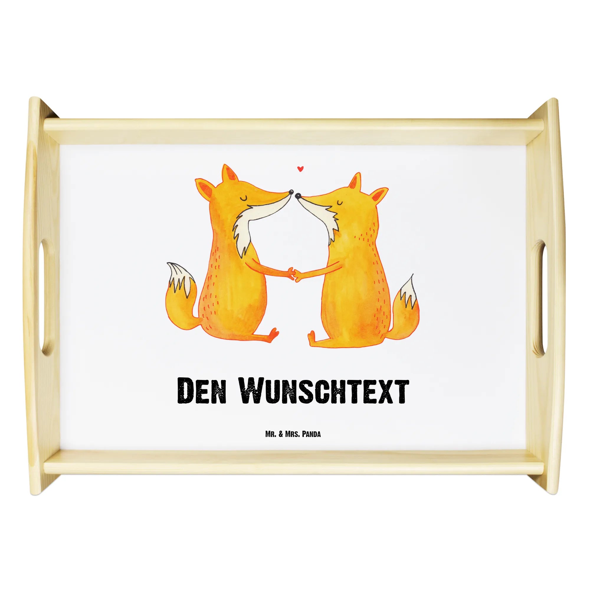 Das personalisierte Serviertablett "Füchse Liebe" von Mr. & Mrs. Panda ist nicht nur ein praktisches Küchenutensil, sondern auch ein wunderschönes Dekorationsstück. Die zwei liebenswerten Füchse, die Hand in Hand sitzen, strahlen eine unendliche Verbundenheit aus und sind der perfekte Ausdruck von Liebe und Zweisamkeit.