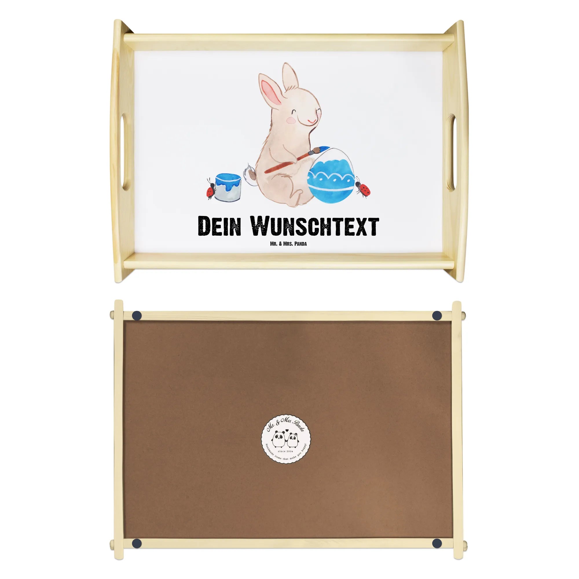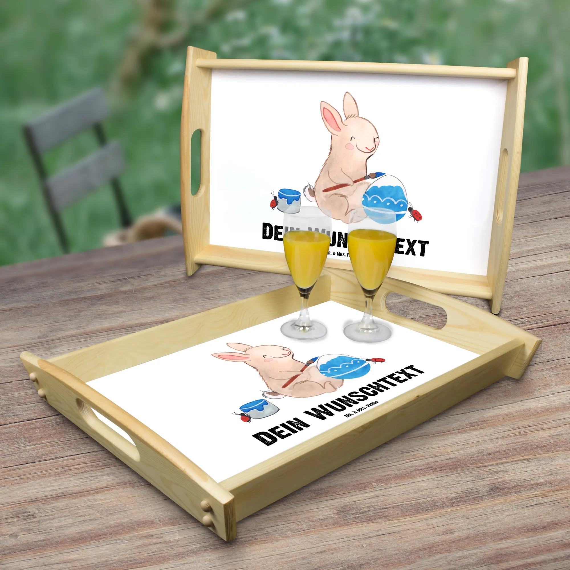 Das personalisierte Serviertablett Hase Marienkäfer aus der Ostern-Kollektion von Mr. & Mrs. Panda ist das perfekte Geschenk für alle, die die zauberhafte Atmosphäre des Osterfestes in ihr Zuhause bringen möchten. Mit einem liebevoll gestalteten Motiv zeigt dieses Tablett einen kleinen, fröhlichen Osterhasen, der mit bunten Pinselstrichen ein Osterei bemalt. Unterstützt wird er dabei von süßen Marienkäfern, die ihm zur Seite stehen und das gesamte Design zu einem echten Blickfang machen.