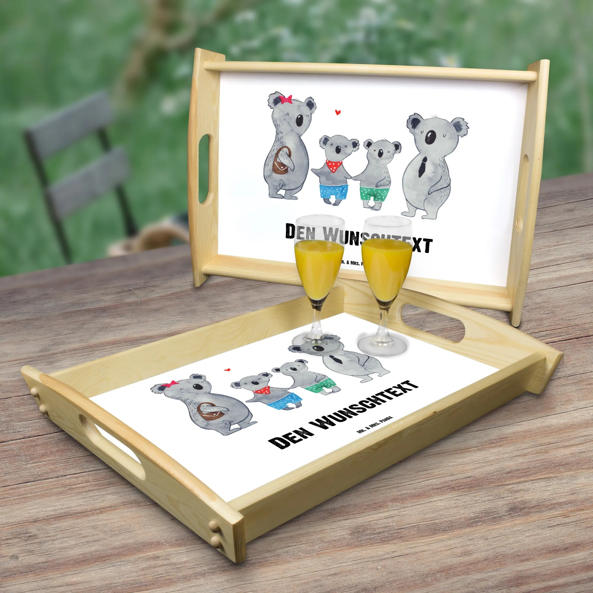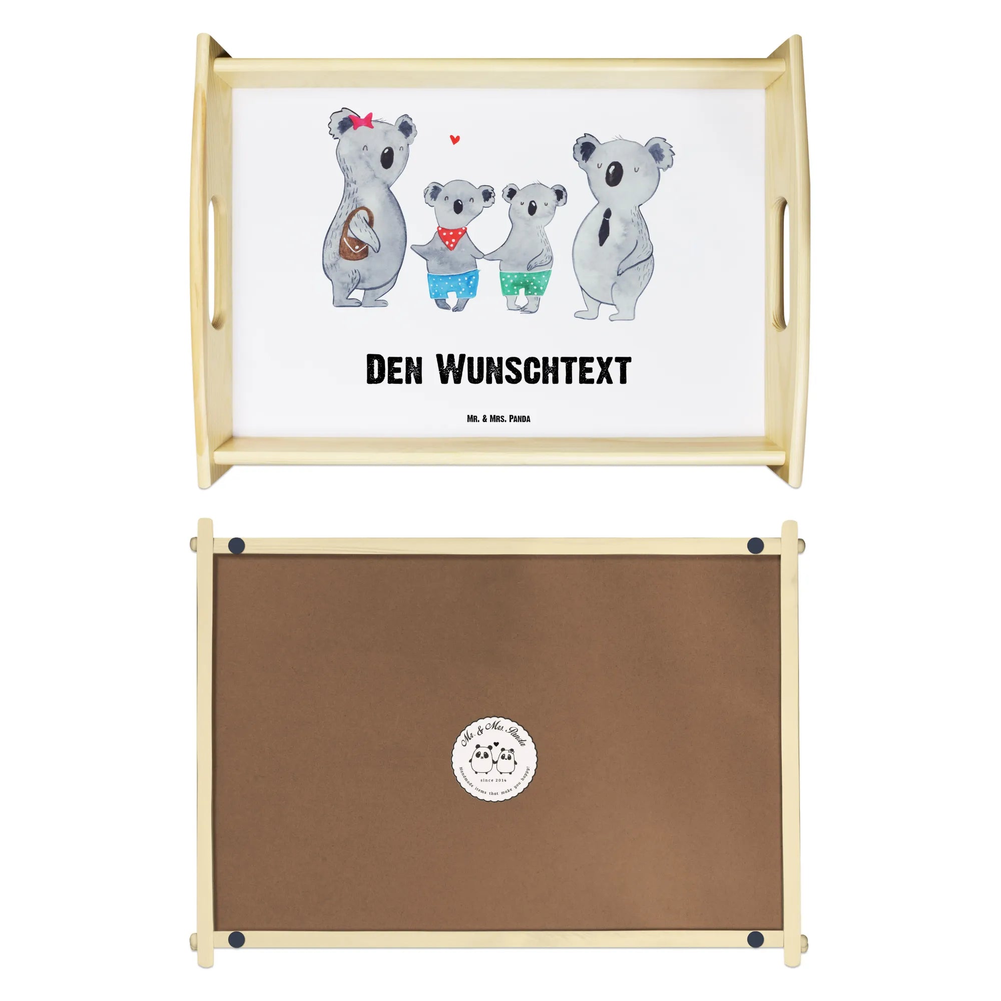 Entdecke das perfekte Geschenk für alle Familienliebhaber mit unserem personalisierten Serviertablett "Koala Familie zwei" aus der Familien Kollektion von Mr. & Mrs. Panda!