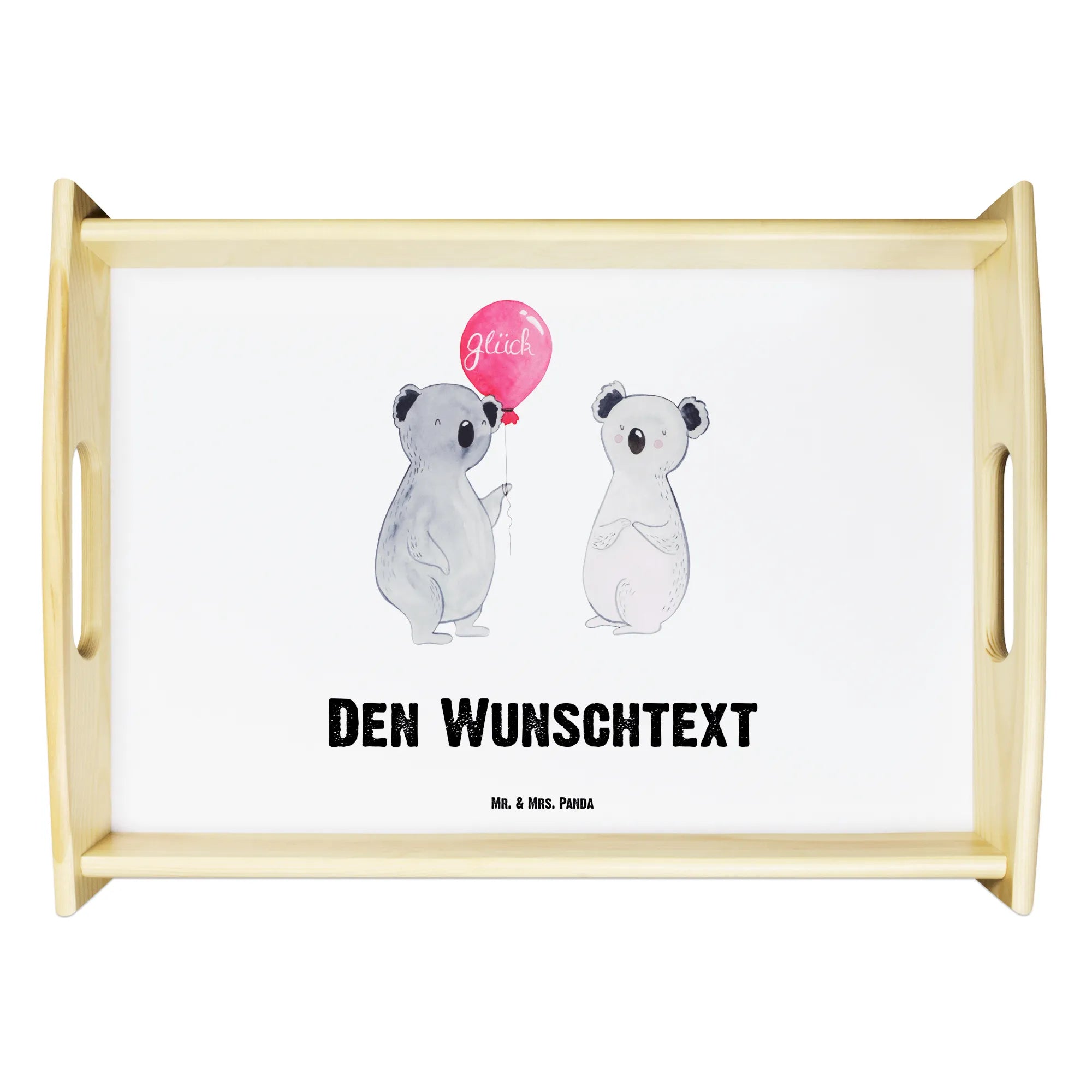 Das personalisierte Serviertablett mit dem fröhlichen Koala Luftballon Motiv ist der perfekte Begleiter für jeden, der es liebt, sein Frühstück stilvoll zu genießen. Ob für das gemütliche Frühstück im Bett, beim Picknick im Park oder als dekoratives Element in deiner Küche, dieses Tablett ist nicht nur praktisch, sondern auch ein echter Hingucker. Das liebevoll gestaltete Design zeigt zwei glückliche Koalas, die den Moment mit einem bunten Luftballon feiern. Dieses Motiv bringt ein Stück Australien in dein Zuhause und sorgt für gute Laune!
