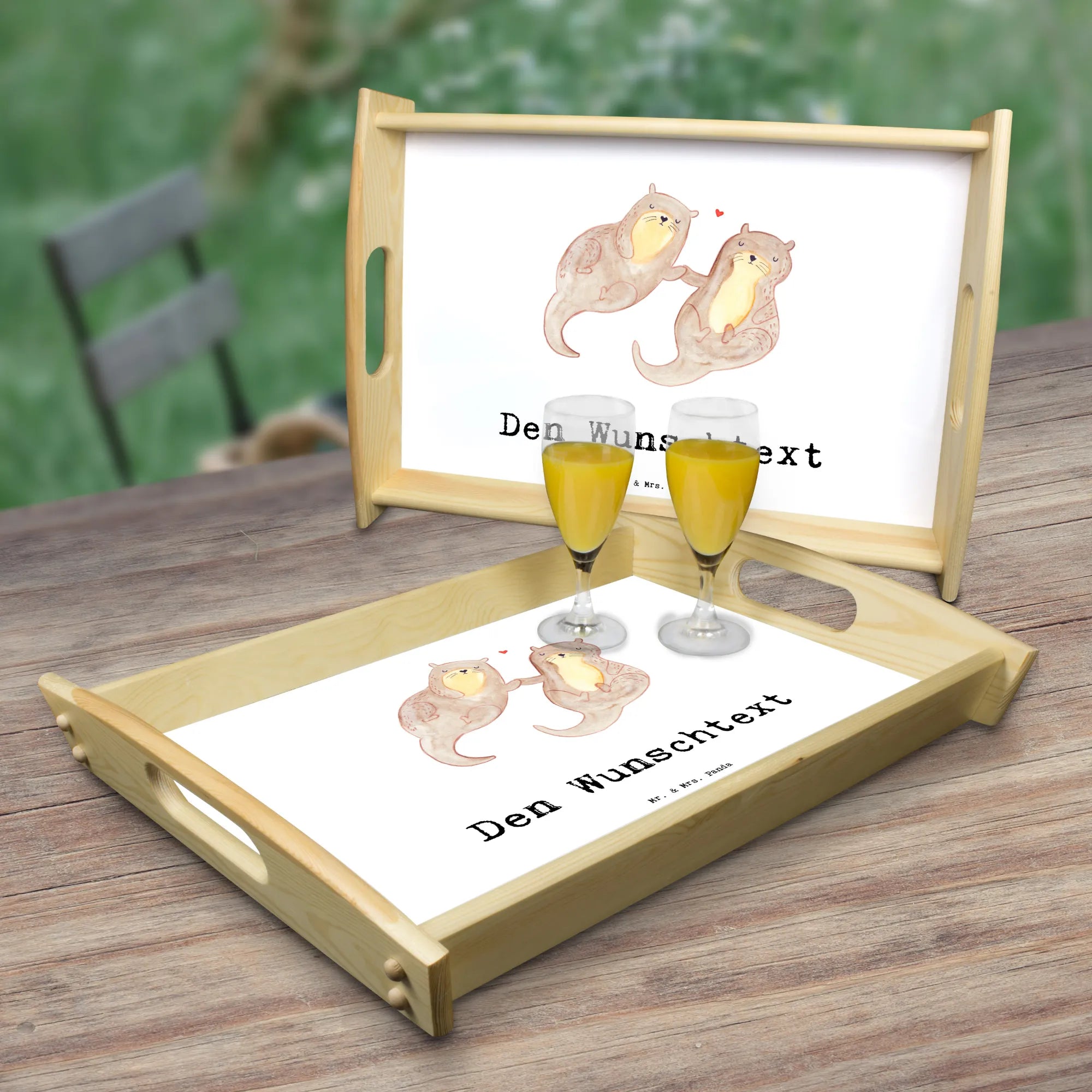 Das personalisierte Serviertablett "Otter Bester Partner der Welt" von Mr. & Mrs. Panda ist das perfekte Geschenk für alle, die ihren Partner oder ihre Partnerin mit einer kleinen, liebevollen Geste überraschen möchten. Mit einem wunderschönen Motiv von zwei Ottern, die sich verliebt an den Händen halten, wird dieses Tablett zu einem echten Hingucker in jedem Zuhause.