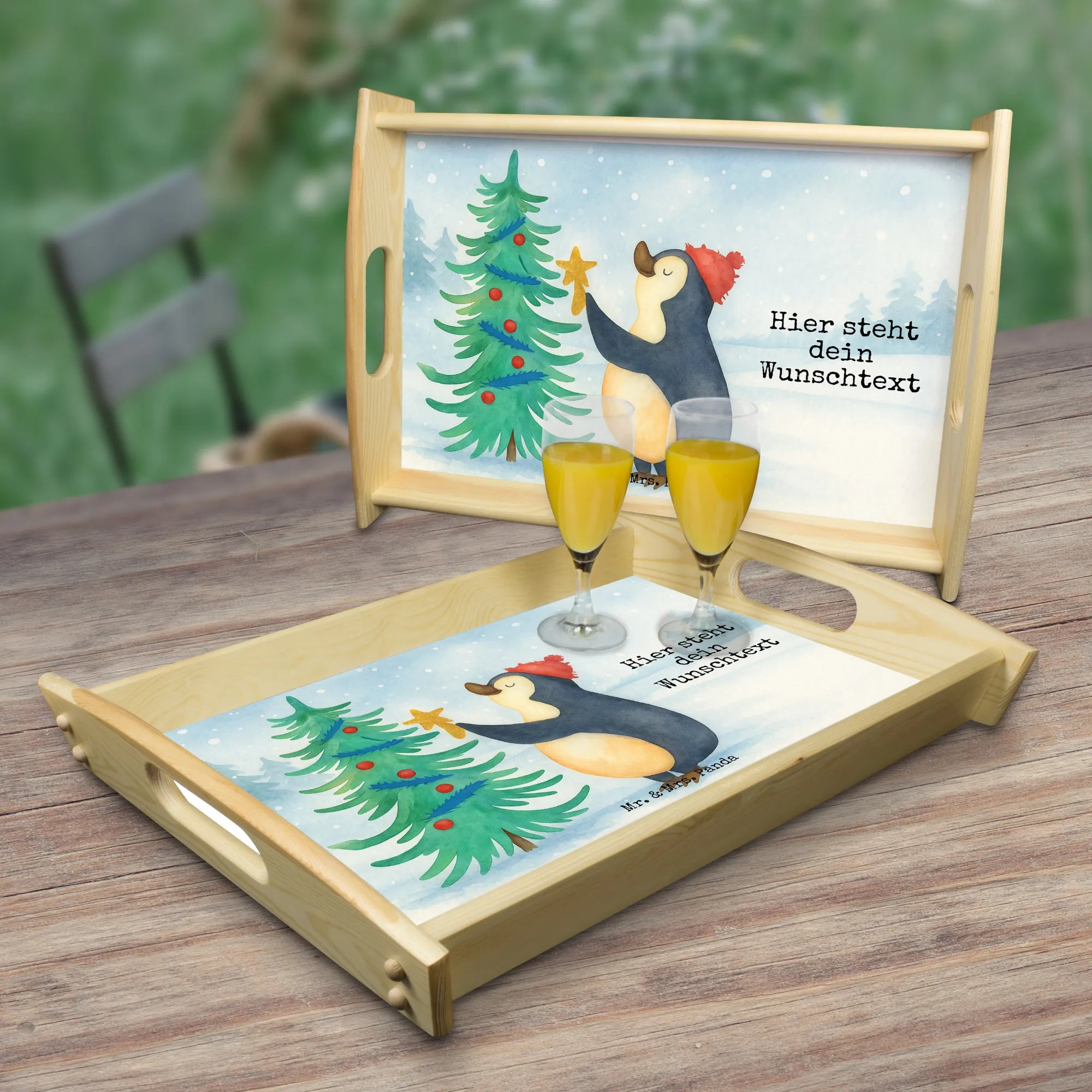 Personalisiertes Serviertablett Pinguin Weihnachtsbaum Design