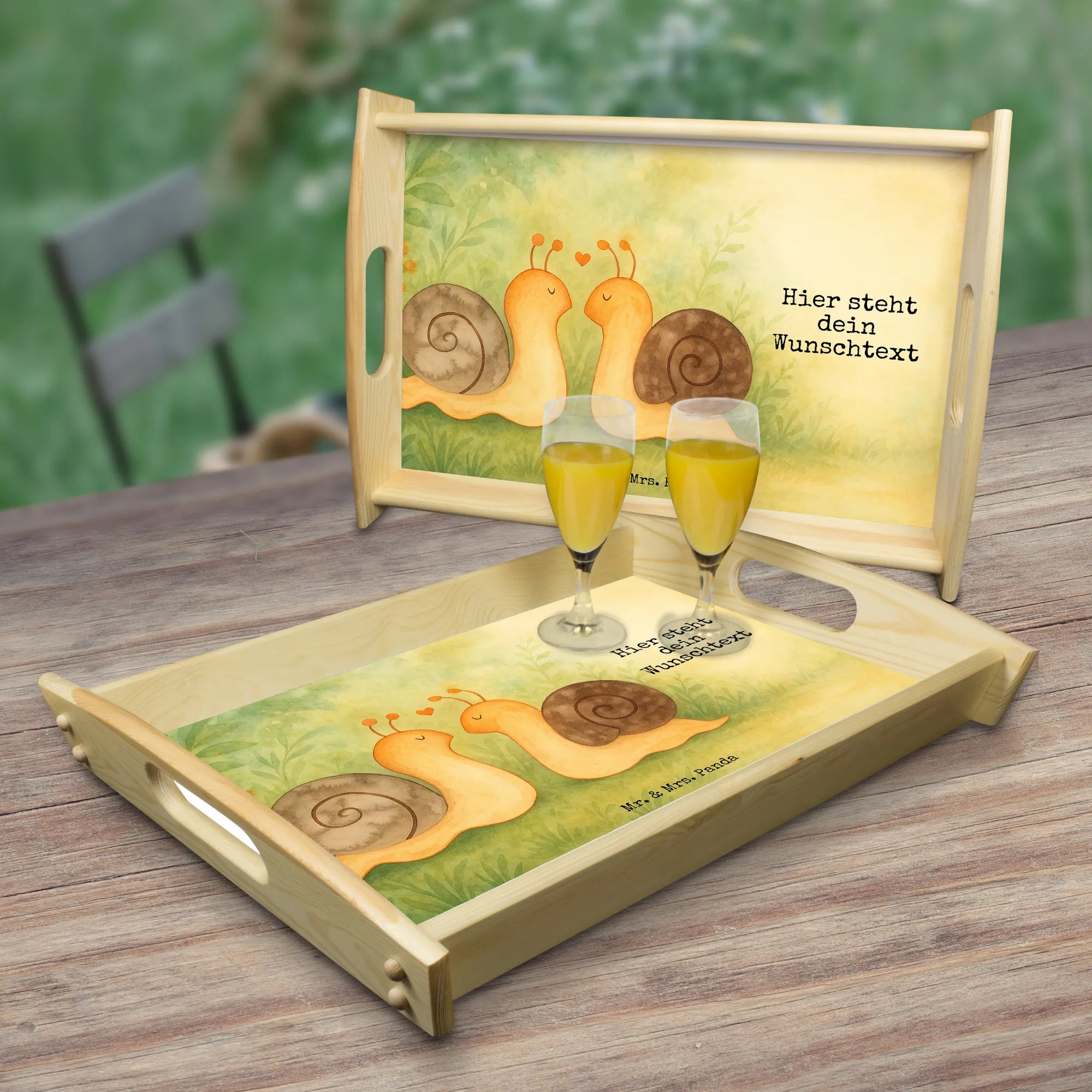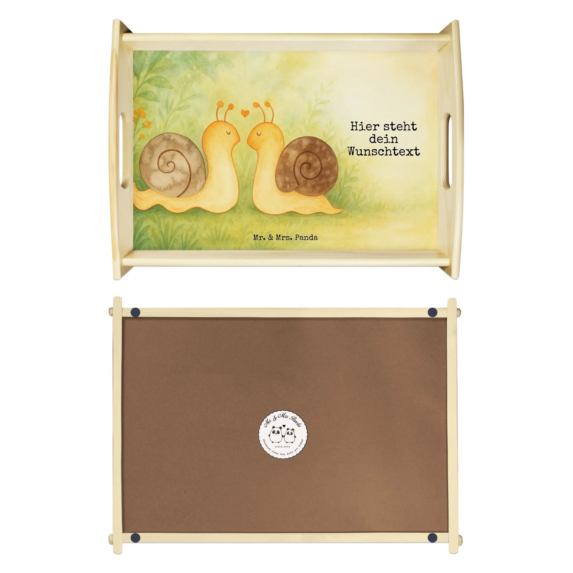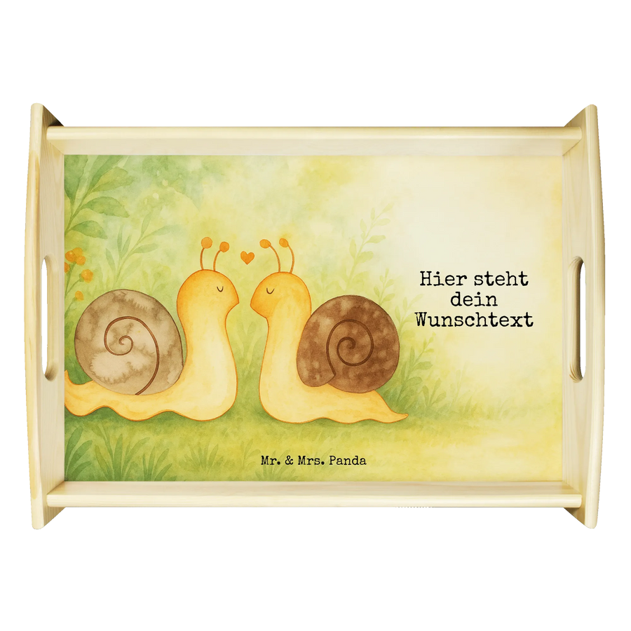 Personalisiertes Serviertablett Schnecken Liebe Design – Mr. & Mrs. Panda