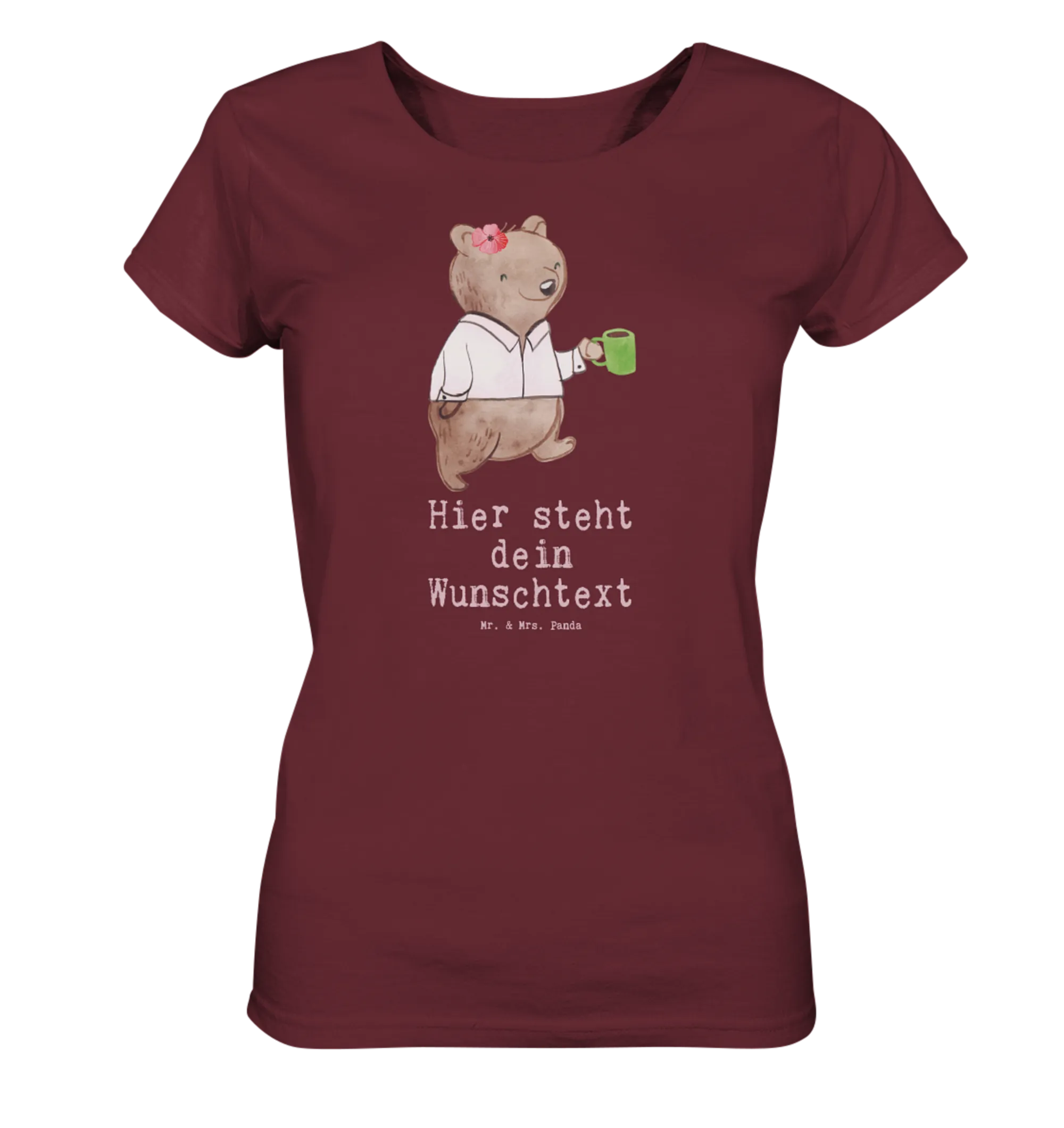 Das bezaubernde Design wurde mit viel Liebe von Mrs. Panda handgezeichnet und ist somit einzigartig. Die Farben strahlen in einem eleganten Burgundy und machen das Shirt zu einem stilvollen Kleidungsstück für jede Gelegenheit.
