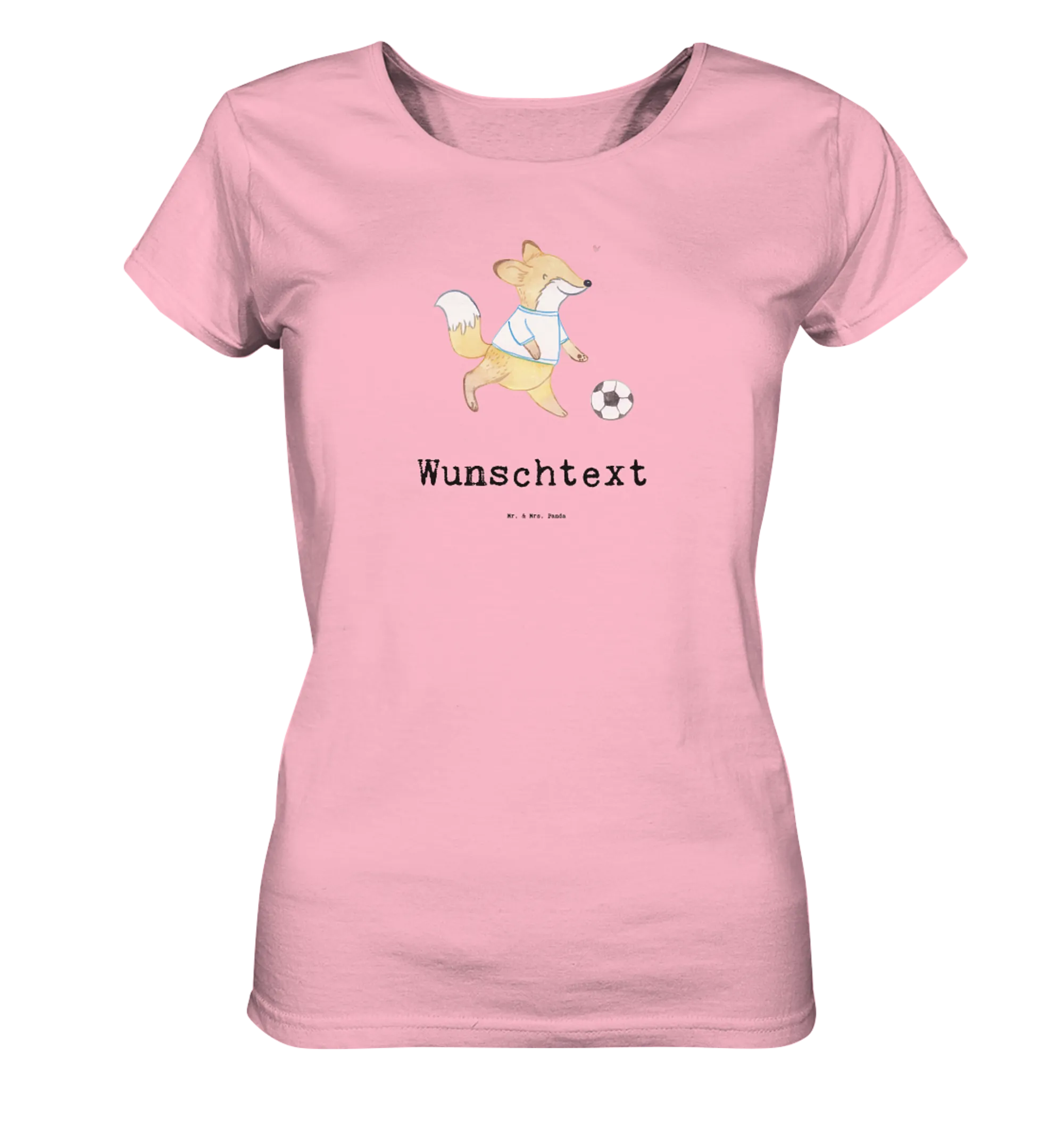 Das personalisierte Shirt Damen mit dem lustigen Motiv "Fuchs Fußball spielen Tage" von Mr. & Mrs. Panda ist das perfekte Geschenk für alle Fußballliebhaber und Sportbegeisterten! Genau richtig für Frauen, die Fußball lieben, egal ob beim Fußballtraining, im Fußballverein oder während spannender Punktspiele.