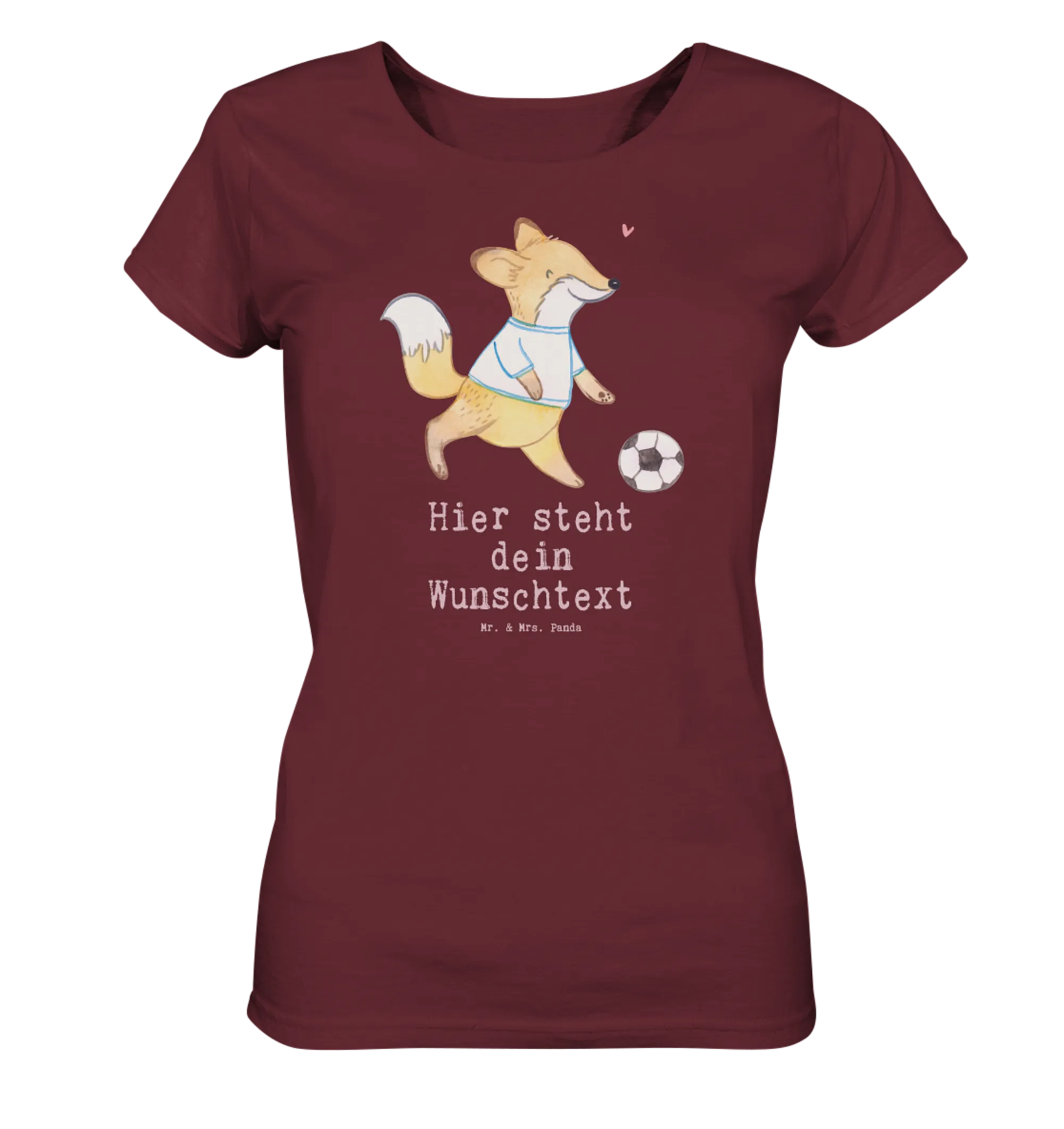 Das personalisierte Shirt Damen mit dem süßen Fuchs, der begeistert Fußball spielt, ist das perfekte Geschenk für alle Sport- und Fußballliebhaberinnen!