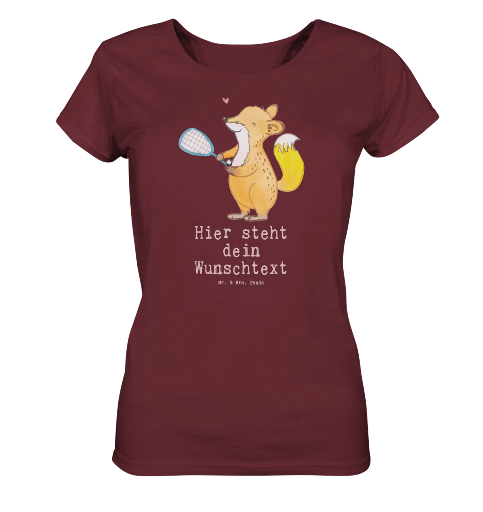 Das angesagte burgunderfarbene Design verleiht dem Shirt eine elegante Note und lässt sich perfekt mit anderen Outfits kombinieren. Worauf wartest Du noch? Verschenke Freude, eine Portion Niedlichkeit und das Gefühl, etwas Besonderes zu tragen, mit dem personalisierte Shirt Damen – Fuchs Squash spielen Tage aus der Hobby & Sport Kollektion von Mr. & Mrs. Panda.