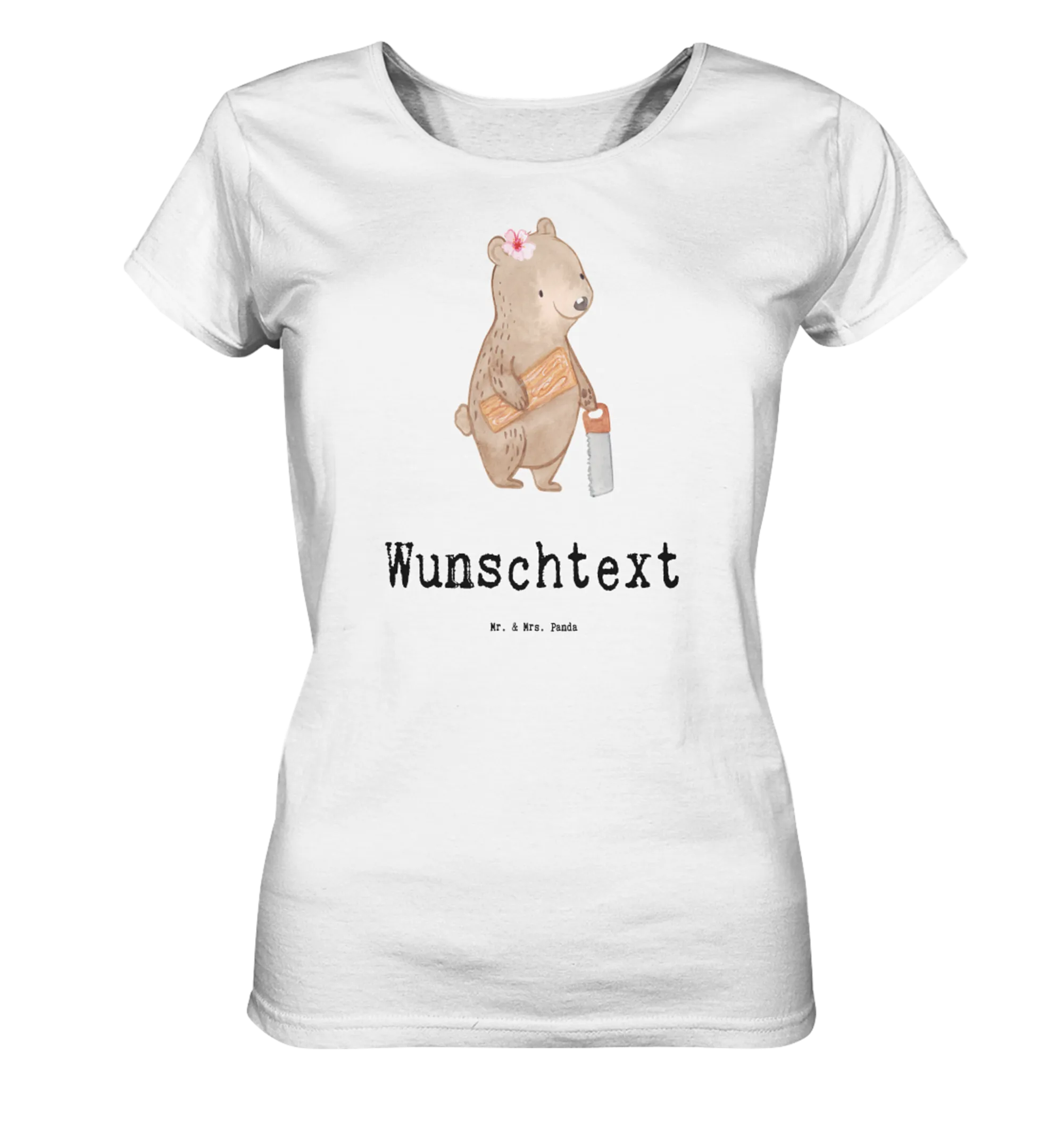 Das Personalisiertes Shirt Damen "Tischlerin mit Herz" aus der kreativen Berufe Kollektion von Mr. & Mrs. Panda ist das perfekte Geschenk für jeden Anlass! Ob zum Junggesellenabschied, einem Jubiläum, Geburtstag oder einfach nur als nette Geste für die beste Freundin - dieses T-Shirt begeistert mit einem liebevollen Motiv und einem Spruch, der Herzen höherschlagen lässt: "Du bist nur ein halber Mensch, wenn du keine Tischlerin bist."