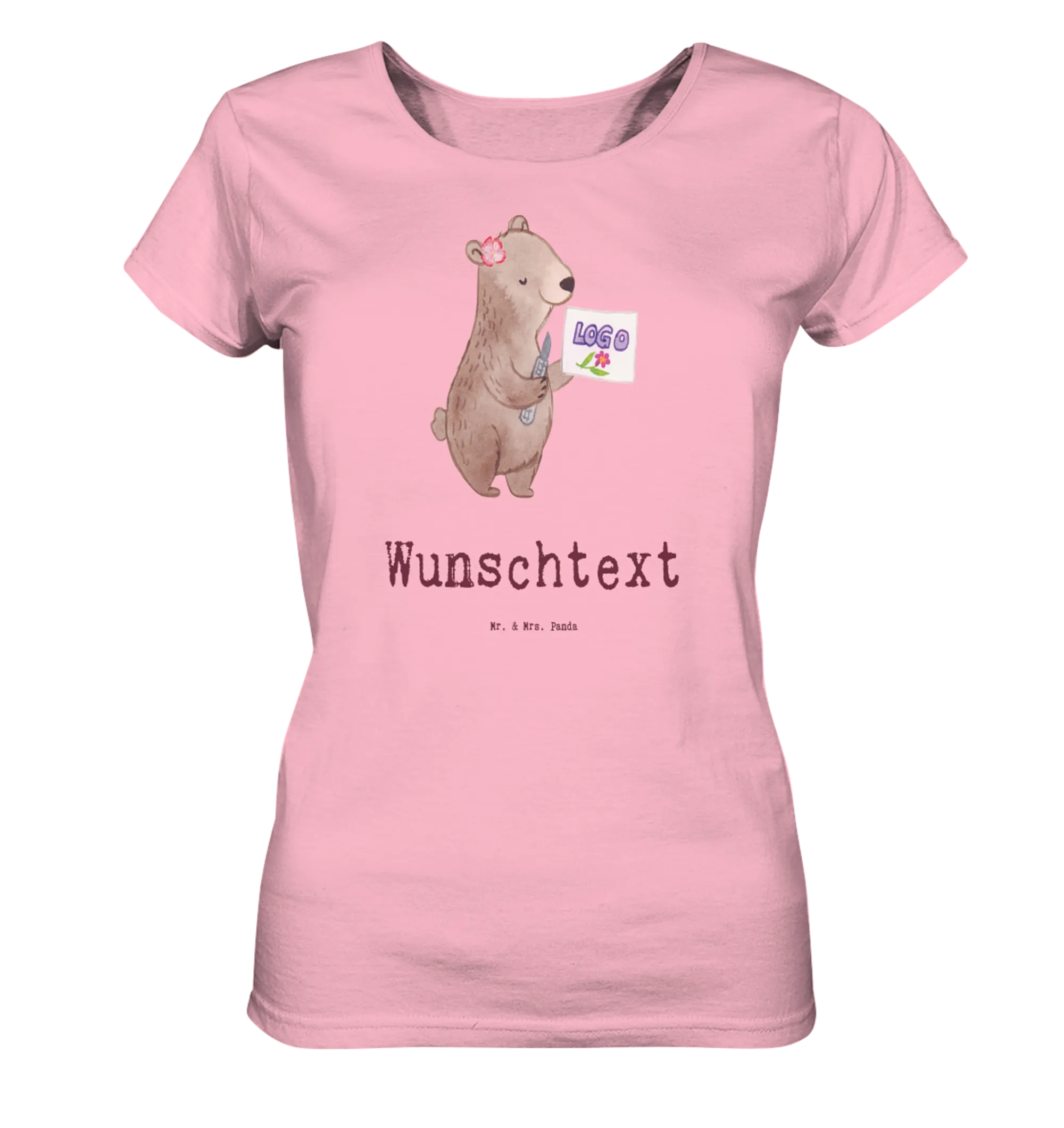 Das personalisierte Shirt Damen mit dem süßen Motiv 'Werbetechnikerin mit Herz' aus der einzigartigen Kollektion 'Berufe' von Mr. & Mrs. Panda ist das perfekte Geschenk für alle kreativen Köpfe unter den Werbetechnikern.