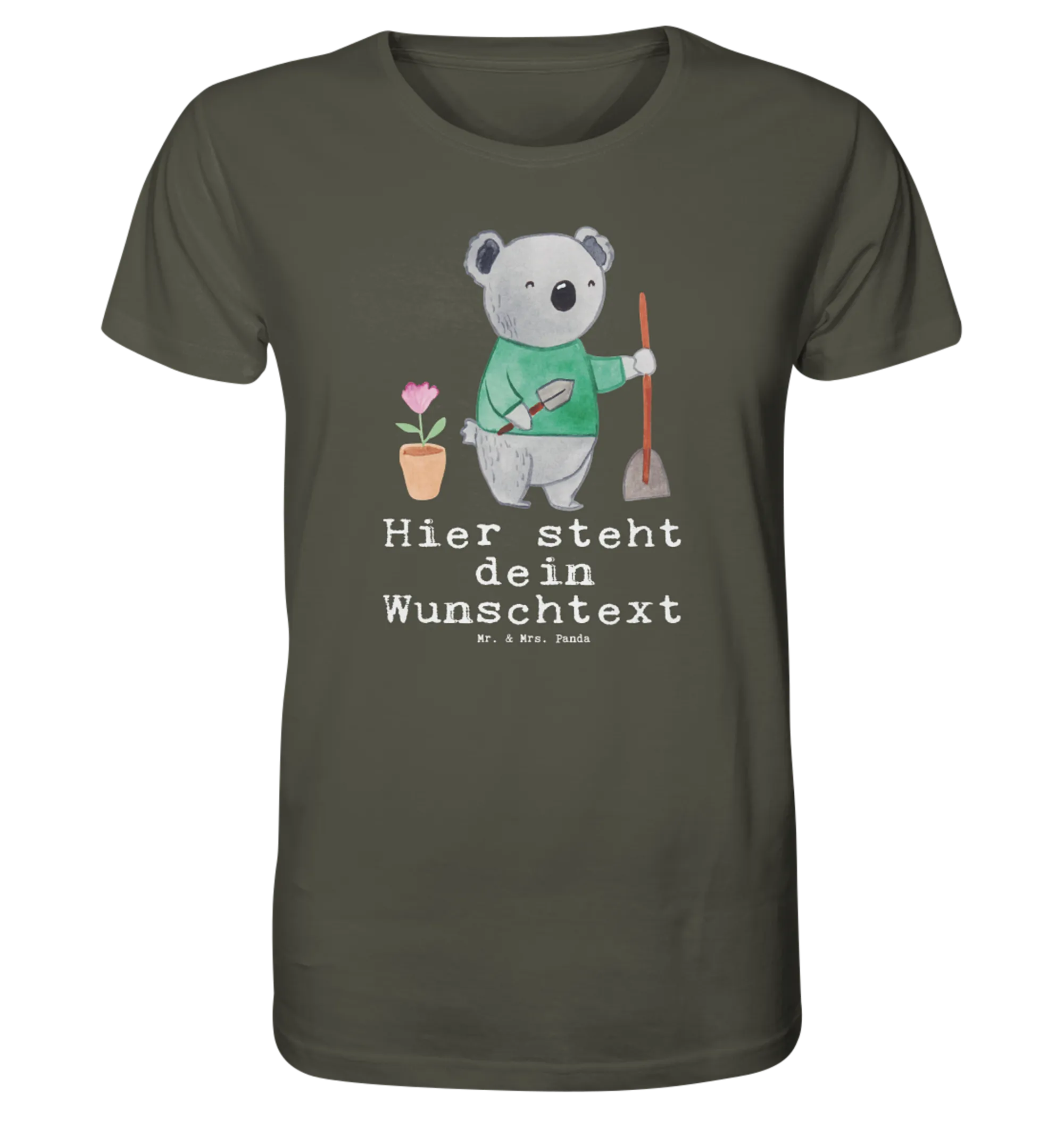 Entdecke das perfekte Geschenk für Gärtner, das Personalisiertes Shirt Herren mit dem tollen Motiv "Gärtner mit Herz"! Dieses Shirt aus 100% Baumwolle ist nicht nur bequem, sondern auch ein echter Hingucker. Ob für den Junggesellenabschied, das Jubiläum oder einfach als lustiges Geschenk zum Geburtstag, dieses T-Shirt wird das Herz aller Gartenliebhaber höher schlagen lassen. Der liebevoll gestaltete Koala zeigt, wie sehr man die Gartenarbeit schätzt und bringt ein Lächeln ins Gesicht.