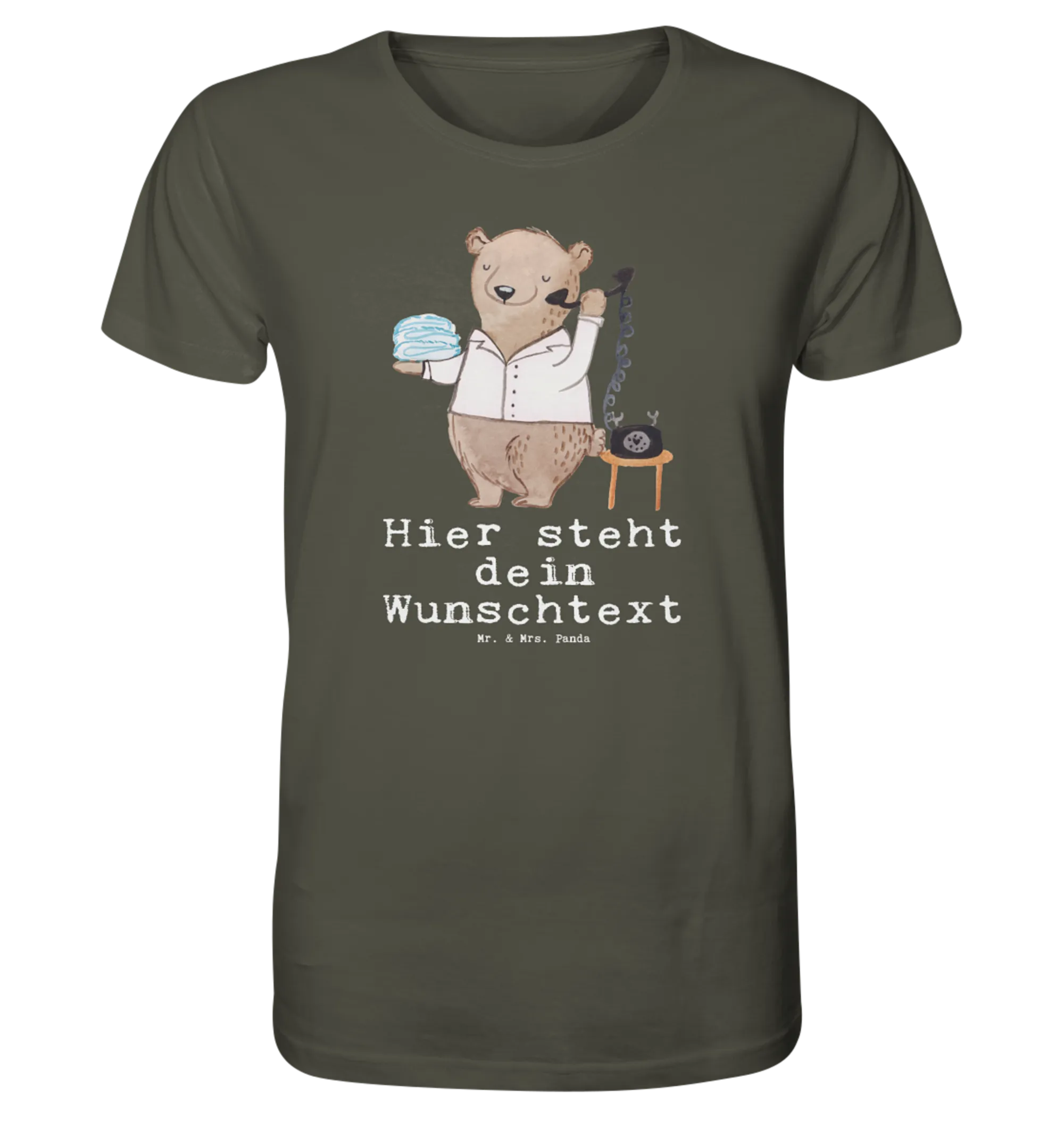 Das süße Motiv zeigt unseren charmanten Bären, der mit einem Telefon in einer Hand und frischen Handtüchern in der anderen Hand strahlt. Ein echter Herzensbrecher, der den Alltag im Hotel zum Lächeln bringt! Das Shirt ist aus 100% Baumwolle gefertigt und trägt das Öko-Siegel, was bedeutet, dass es nicht nur super weich, sondern auch umweltfreundlich ist.