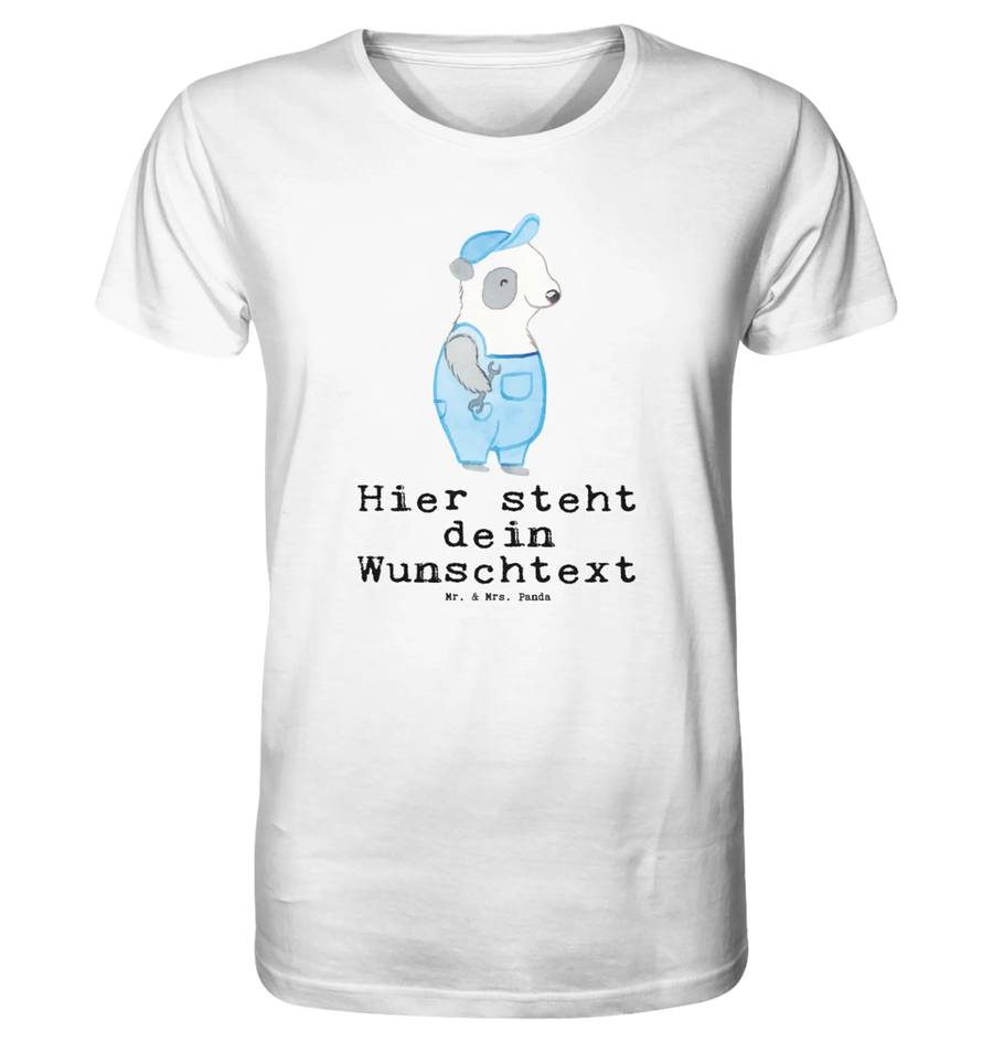 Das Personalisiertes Shirt Herren Kfz-Mechatroniker mit Herz ist das perfekte Geschenk für alle Kfz-Mechatroniker und Kfz-Mechatronikerinnen! Mit einem süßen Panda im Blaumann, der einen Schraubenzieher hält, und dem liebevollen Motto "Du bist nur ein halber Mensch, wenn du kein Kfz-Mechatroniker bist", bringt dieses T-Shirt ein Lächeln auf die Gesichter.