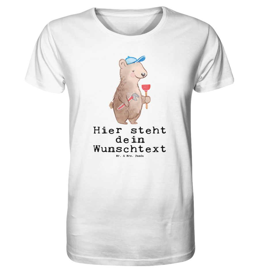 Das Personalisiertes Shirt Herren mit dem Motiv 'Klempner mit Herz' aus der kreativen Berufe Kollektion von Mr. & Mrs. Panda ist das perfekte Geschenk für alle, die in der Sanitär- oder Klempnerbranche tätig sind oder einfach nur die Leidenschaft für diesen Beruf haben.