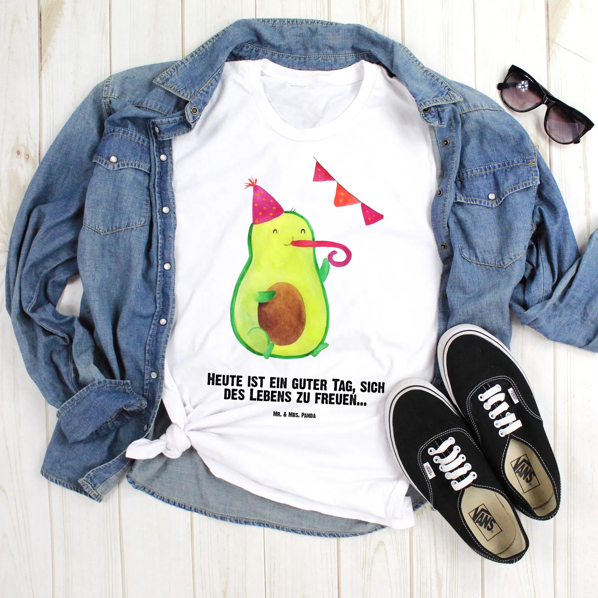 Das personalisierte T-Shirt "Avocado Party" von Mr. & Mrs. Panda ist das perfekte Geschenk für jeden, der das Leben mit einem Lächeln genießt! Handgezeichnet und voller Lebensfreude, zeigt unser süßes Avocado-Motiv einen fröhlichen Avocado-Charakter, der einen lustigen Partyhut trägt und in eine Partypfeife pustet.