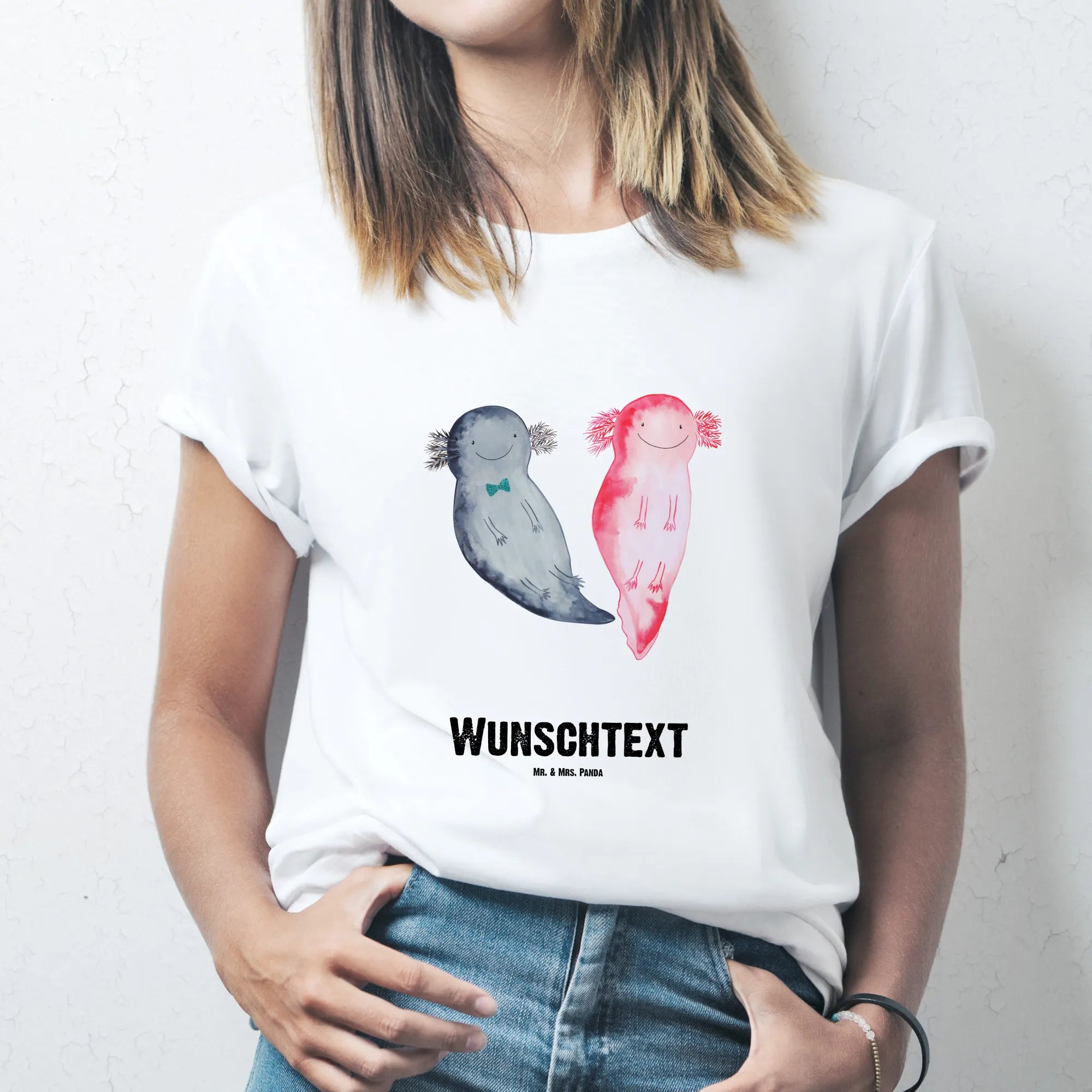 Mr. & Mrs. Panda präsentiert: Personalisiertes Damen T-Shirt Größe L – Axolotl Axel+Lotte