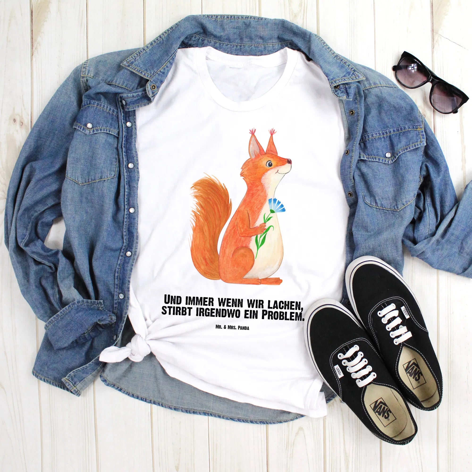 Verschenke ein Lächeln – verschenke Persönlichkeit. Das Mr. & Mrs. Panda Größe M Personalisiertes T-Shirt „Eichhörnchen Blume“ ist ein liebevolles, fröhliches Geschenk für alle, die Tiere, lustige Sprüche und individuelle Mode schätzen.