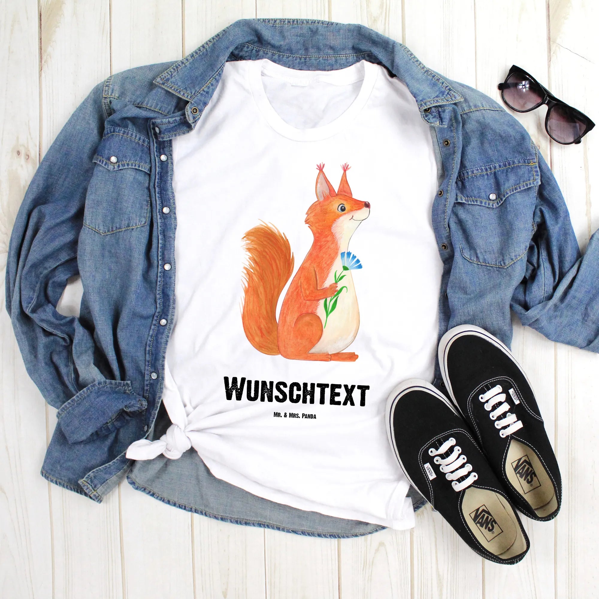Suchst du ein Geschenk, das von Herzen kommt? Unser Größe M Personalisiertes T-Shirt „Eichhörnchen Blume“ aus der Small World Kollektion von Mr. & Mrs. Panda vereint liebevolle Illustration, positiven Spruch und die Möglichkeit zur Personalisierung zu einem einzigartigen Kleidungsstück.