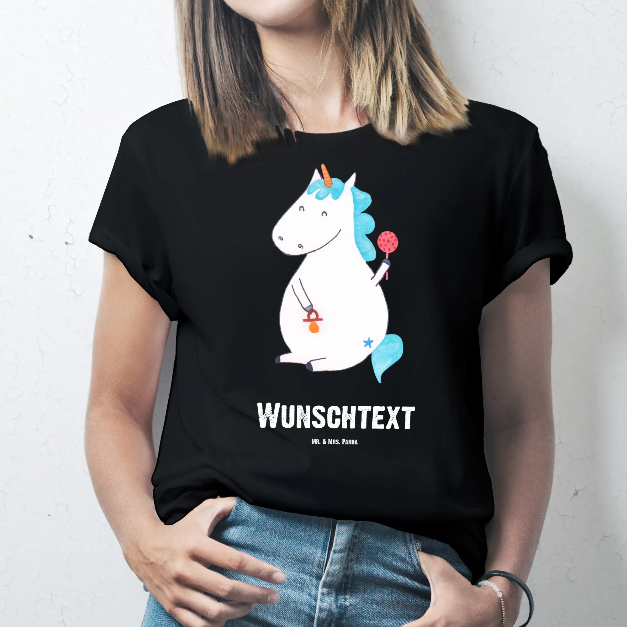 Das Größe M Personalisiertes T-Shirt mit dem zauberhaften Einhorn Baby ist das perfekte Geschenk für frisch gebackene Eltern und all jene, die die wunderbare Welt der Einhörner lieben. Es präsentiert ein süßes Baby-Einhorn, das mit einem Schnuller in der Hand fröhlich umherstrahlt. Diese Spezialsorte von Mr. & Mrs. Panda bringt nicht nur Freude, sondern auch ein Stückchen Unicorn-Zauber in den Alltag deiner Liebsten.