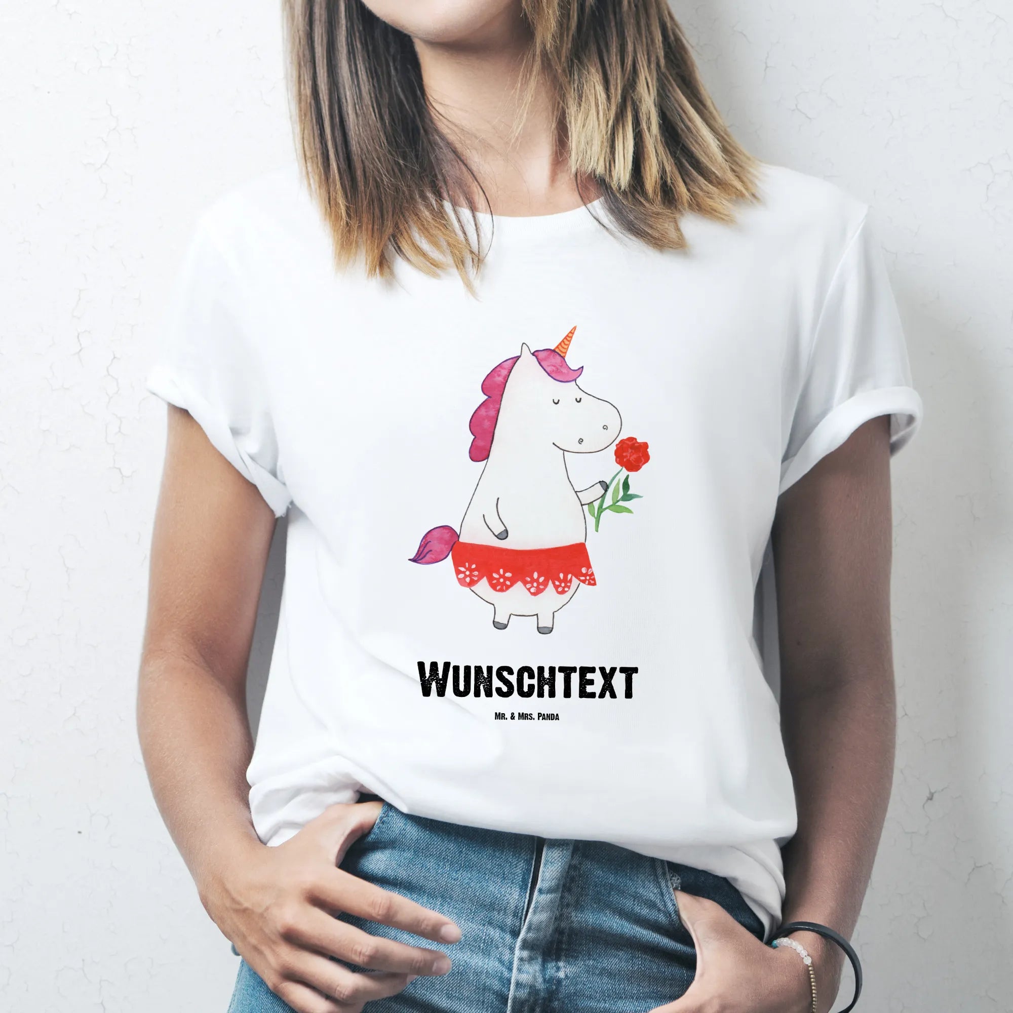 Perfektes Geschenk für Einhorn-Fans: Du suchst ein persönliches Geschenk für Deine Freundin, Deine Frau oder die Braut beim Junggesellinnenabschied? Unser Größe M Personalisiertes T-Shirt „Einhorn Dame“ aus der Einhorn - Kollektion ist genau das Richtige! Das süße Einhorn-Motiv wurde liebevoll von Mrs. Panda handgezeichnet und kann mit Deinem Wunschname personalisiert werden.