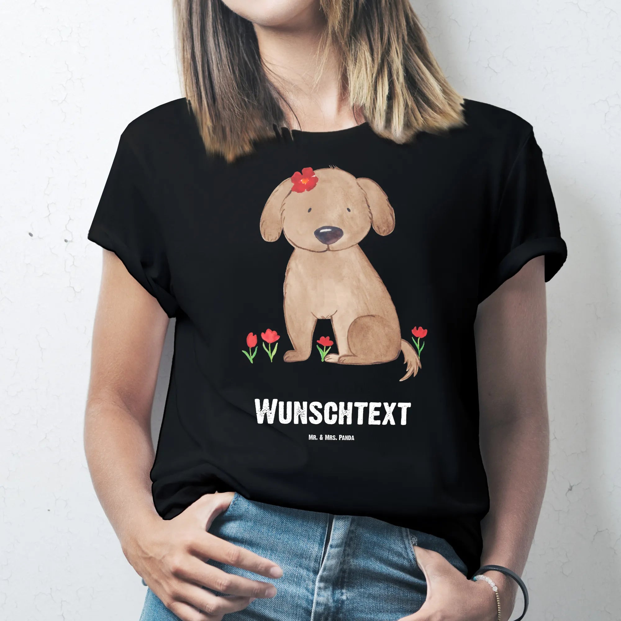Dieses personalisierte T-Shirt ist die perfekte Geschenkidee für Hundebesitzer, für Frauchen, für Hundefreunde und alle, die Hundeglück und Hundeliebe gern sichtbar tragen. Kombiniere Herz, Humor und Persönlichkeit – mit Mr. & Mrs. Panda.
