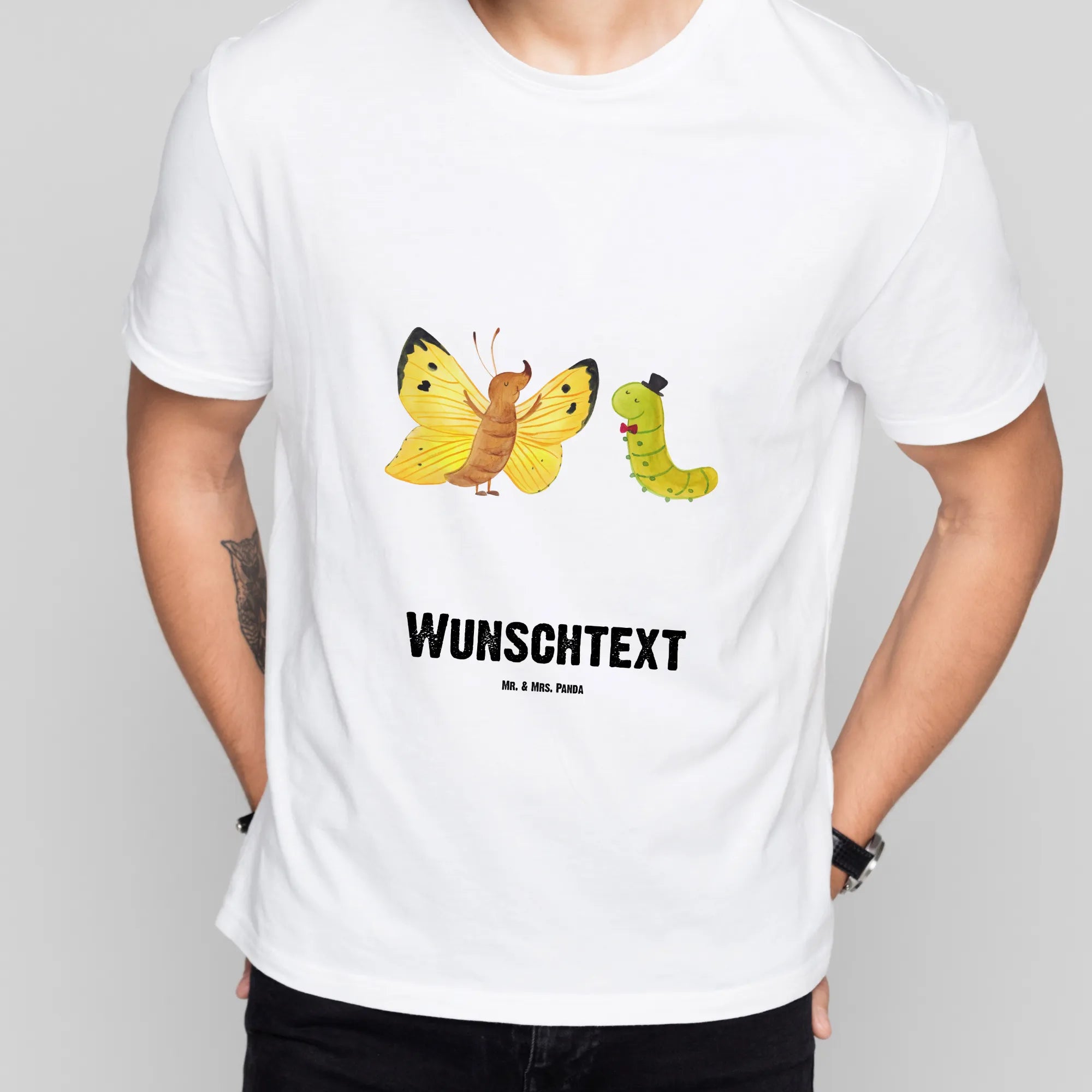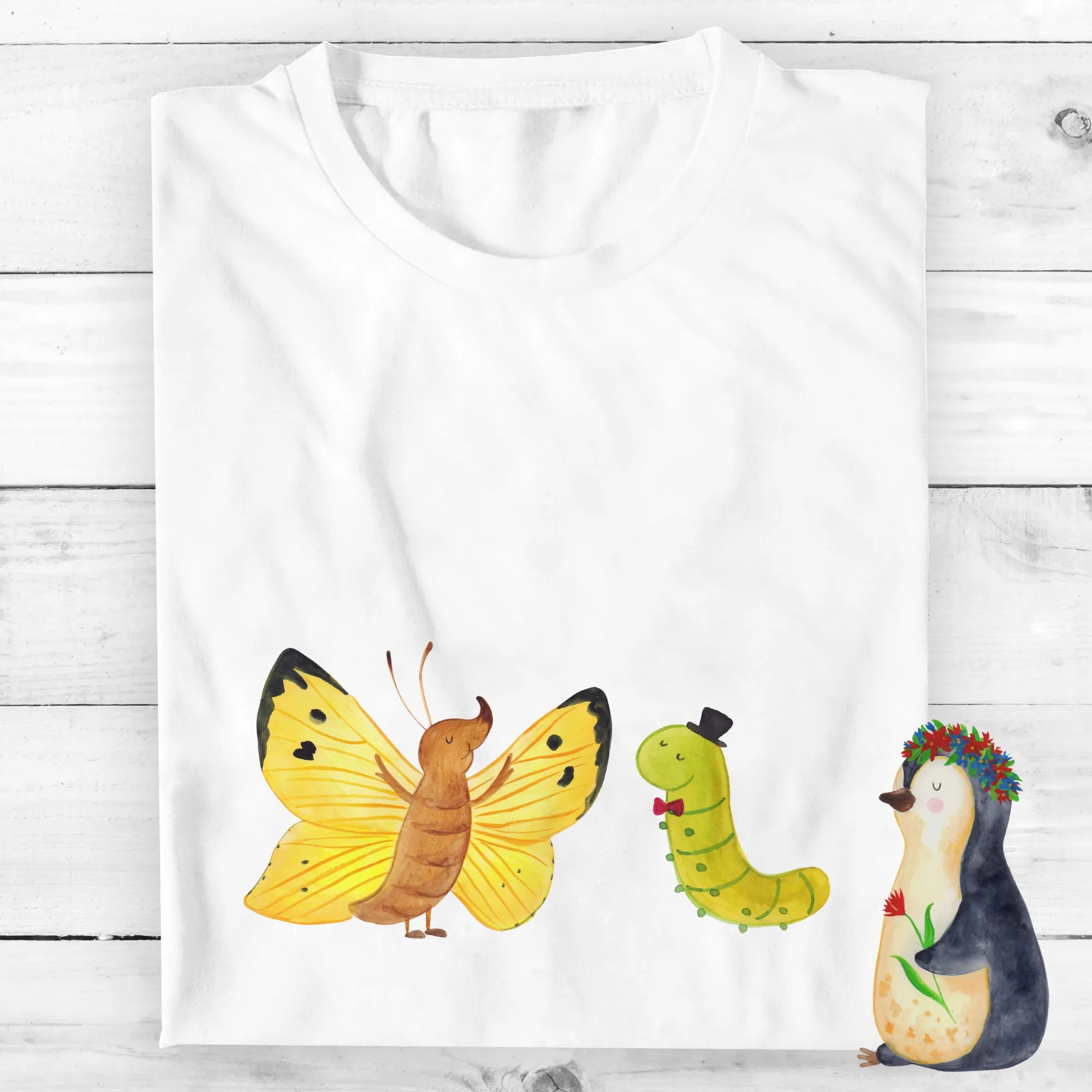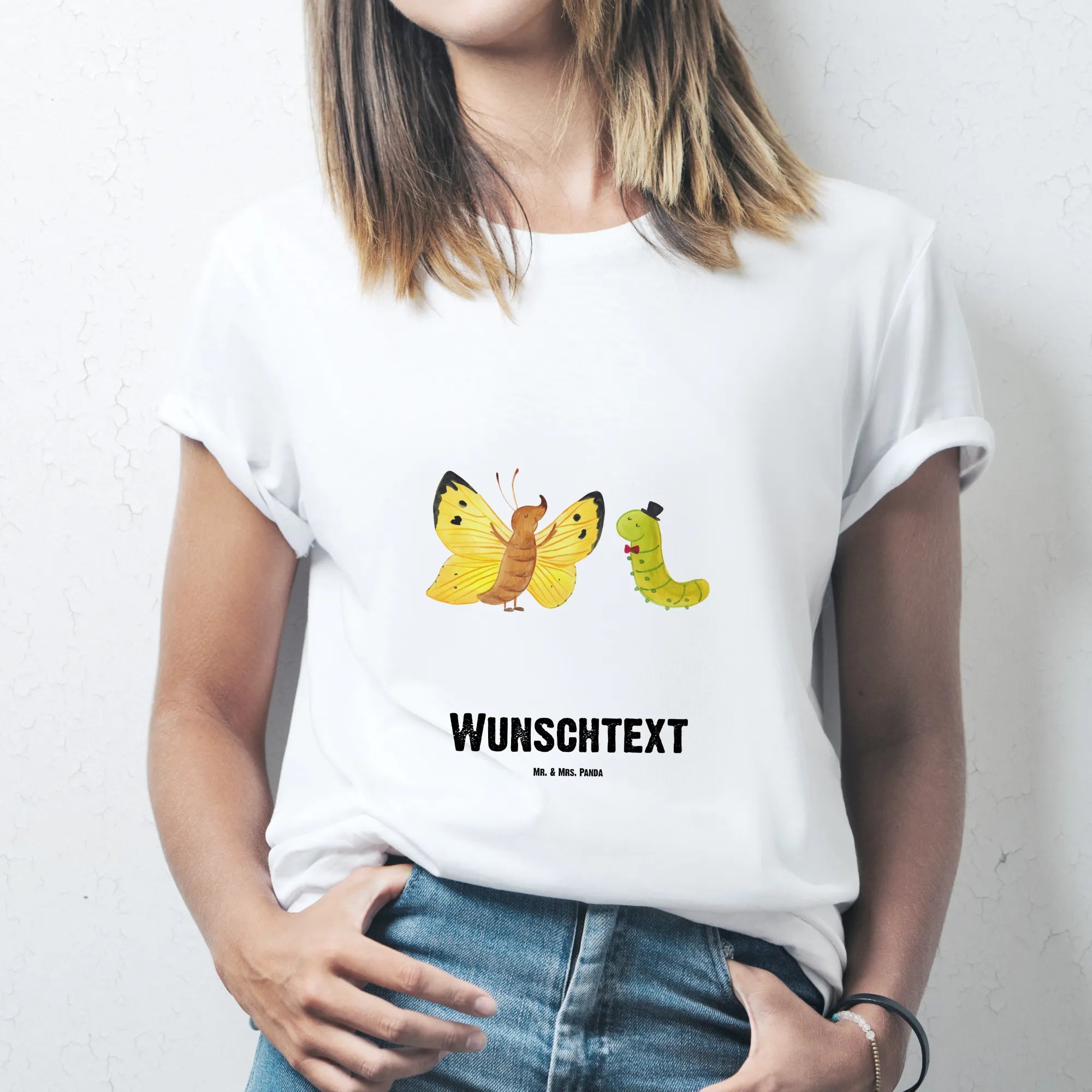 Entdecke das perfekte Geschenk mit unserem Größe L Personalisierten T-Shirt mit dem zauberhaften Motiv Raupe & Schmetterling aus der einzigartigen Small World Kollektion von Mr. & Mrs. Panda! Dieses T-Shirt ist mehr als nur ein Kleidungsstück; es ist ein Symbol für Wachstum, Transformation und das Erwachsenwerden.