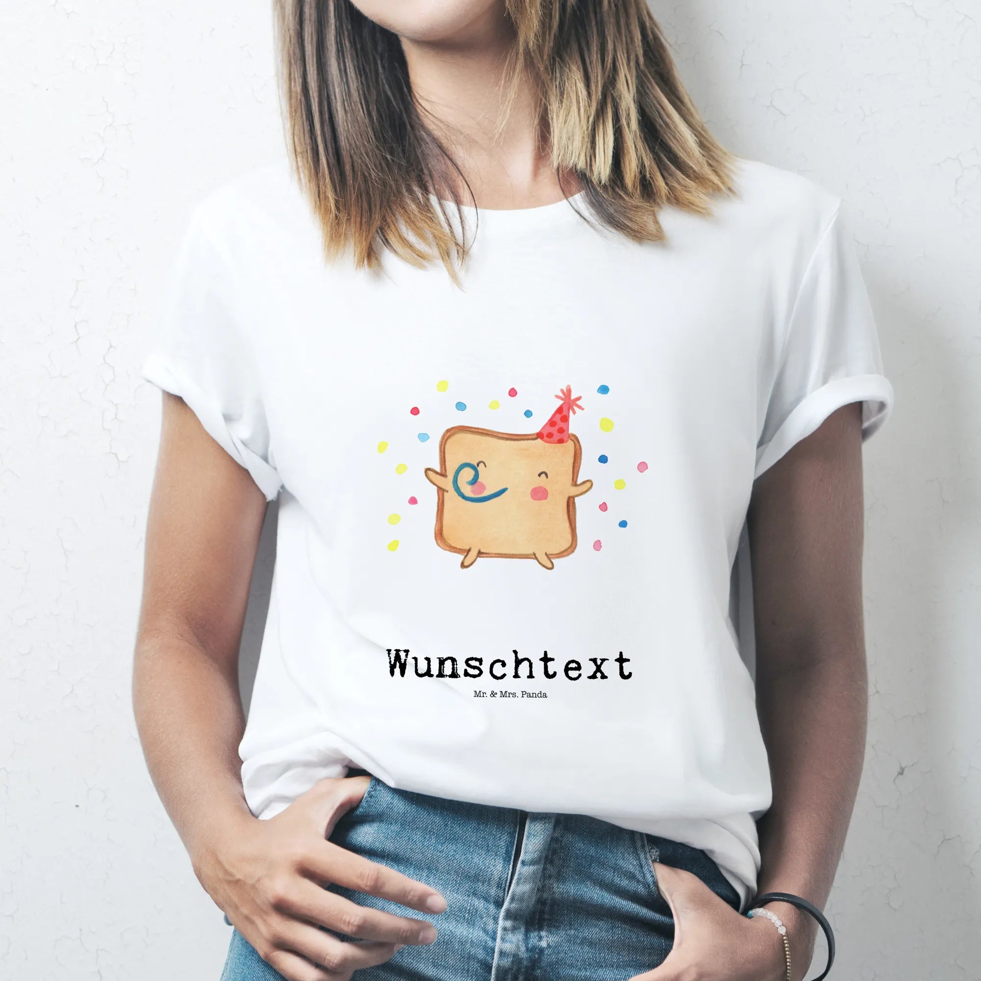 Suchst du nach dem perfekten Geschenk für deine Liebsten? Das personalisierte T-Shirt "Toast Party" aus der Kollektion Liebe von Mr. & Mrs. Panda ist die ideale Wahl! Dieses besondere T-Shirt in Größe S bringt ein Lächeln auf die Gesichter deiner Freunde, Partner oder Ehepartner. Mit dem einzigartigen Motiv eines fröhlichen Toasts, der mit menschlichen Zügen versehen ist und einen bunten Partyhut trägt, ist es nicht nur blickenfangend, sondern auch voller Lebensfreude! Umgeben von buntem Konfetti, strahlt das Design Freude und Glück aus.