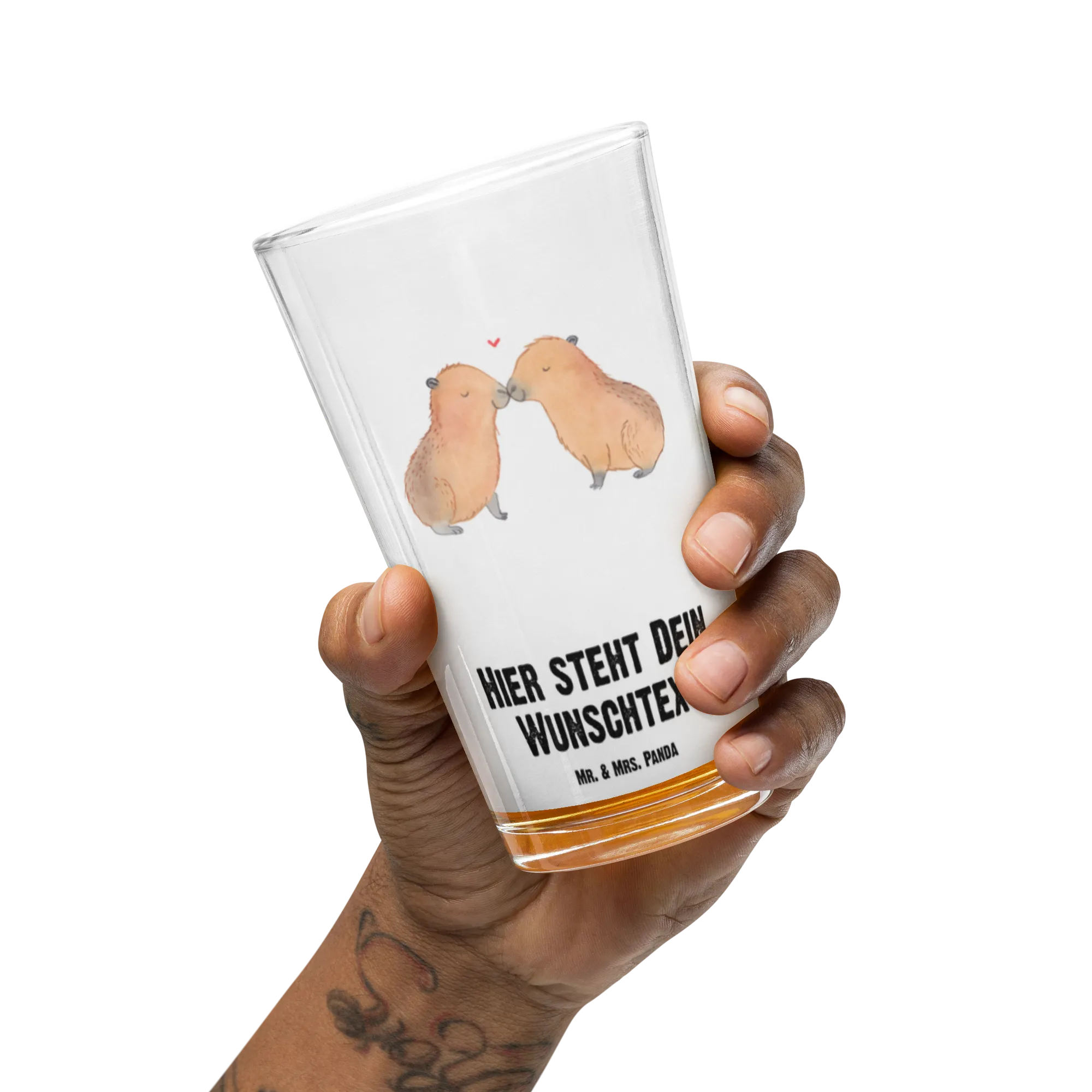 Das personalisierte Trinkglas mit dem zauberhaften Motiv "Capybara Liebe" von Mr. & Mrs. Panda ist das perfekte Geschenk für alle, die ihren Liebsten eine Freude bereiten möchten!