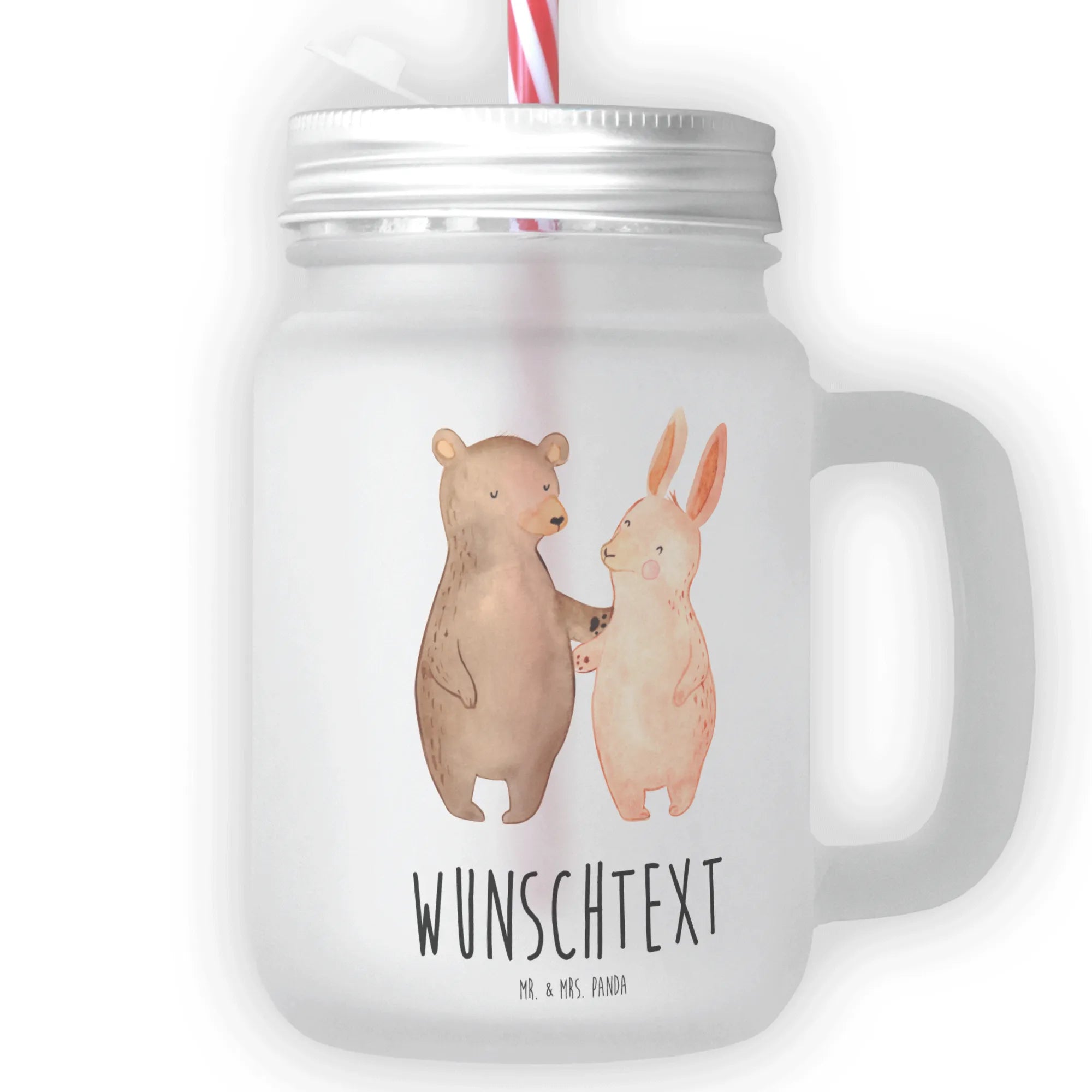 Personalisiertes Trinkglas Mason Jar Bär Hase Umarmen