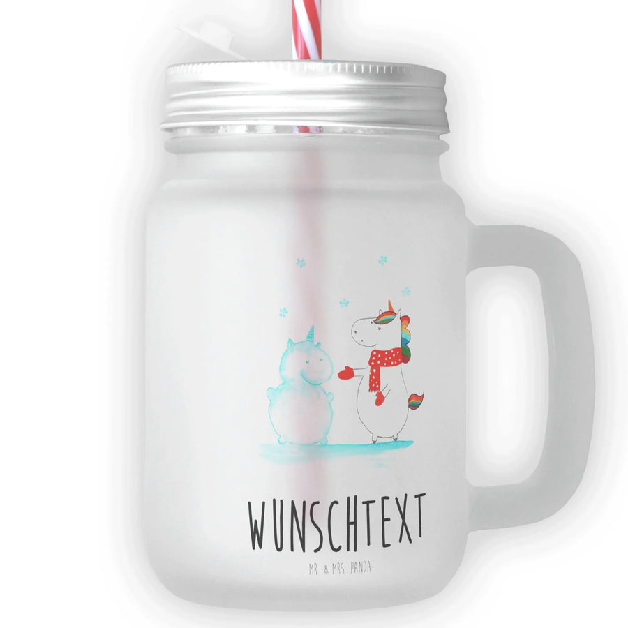 Personalisiertes Trinkglas Mason Jar Einhorn Schneemann – Mr. & Mrs. Panda