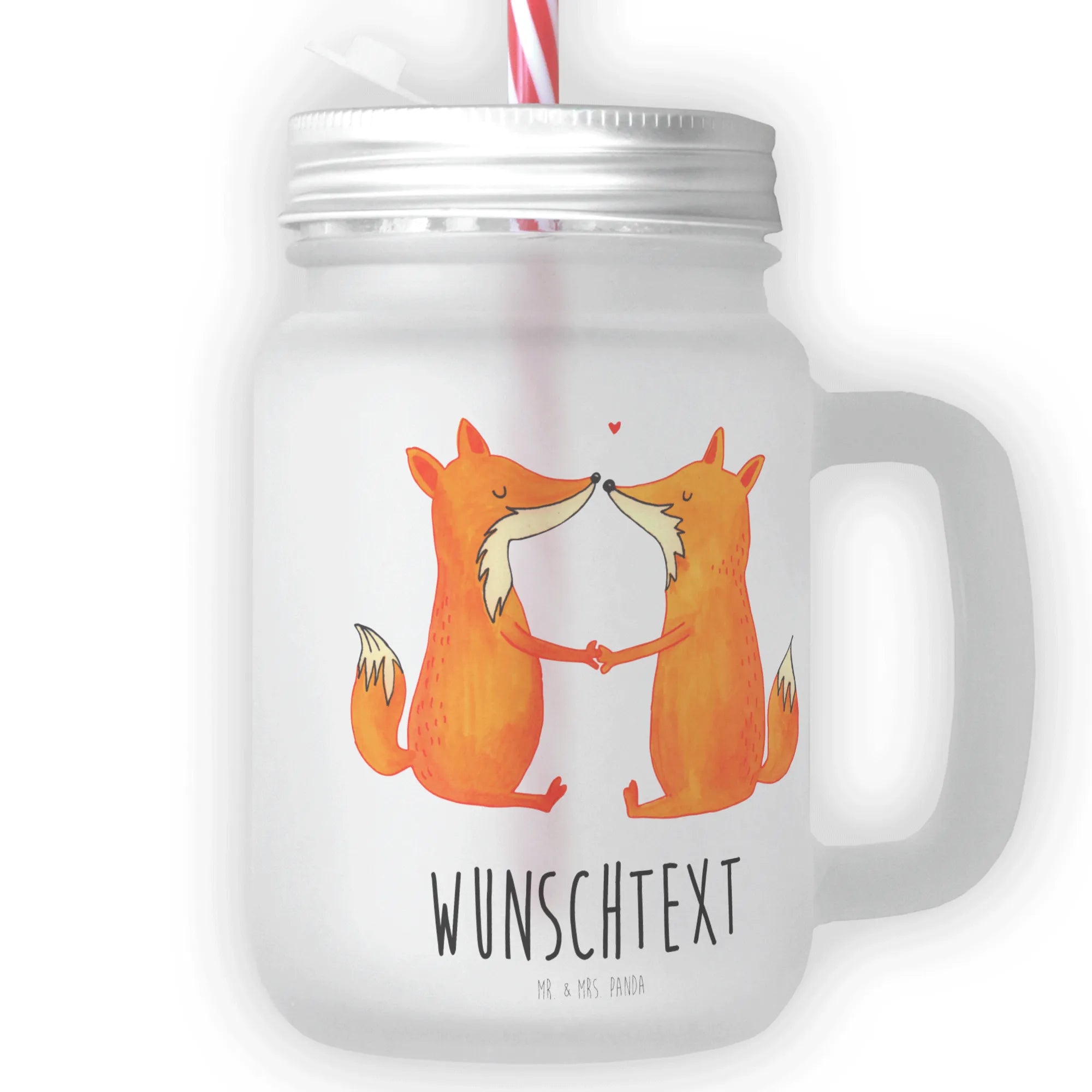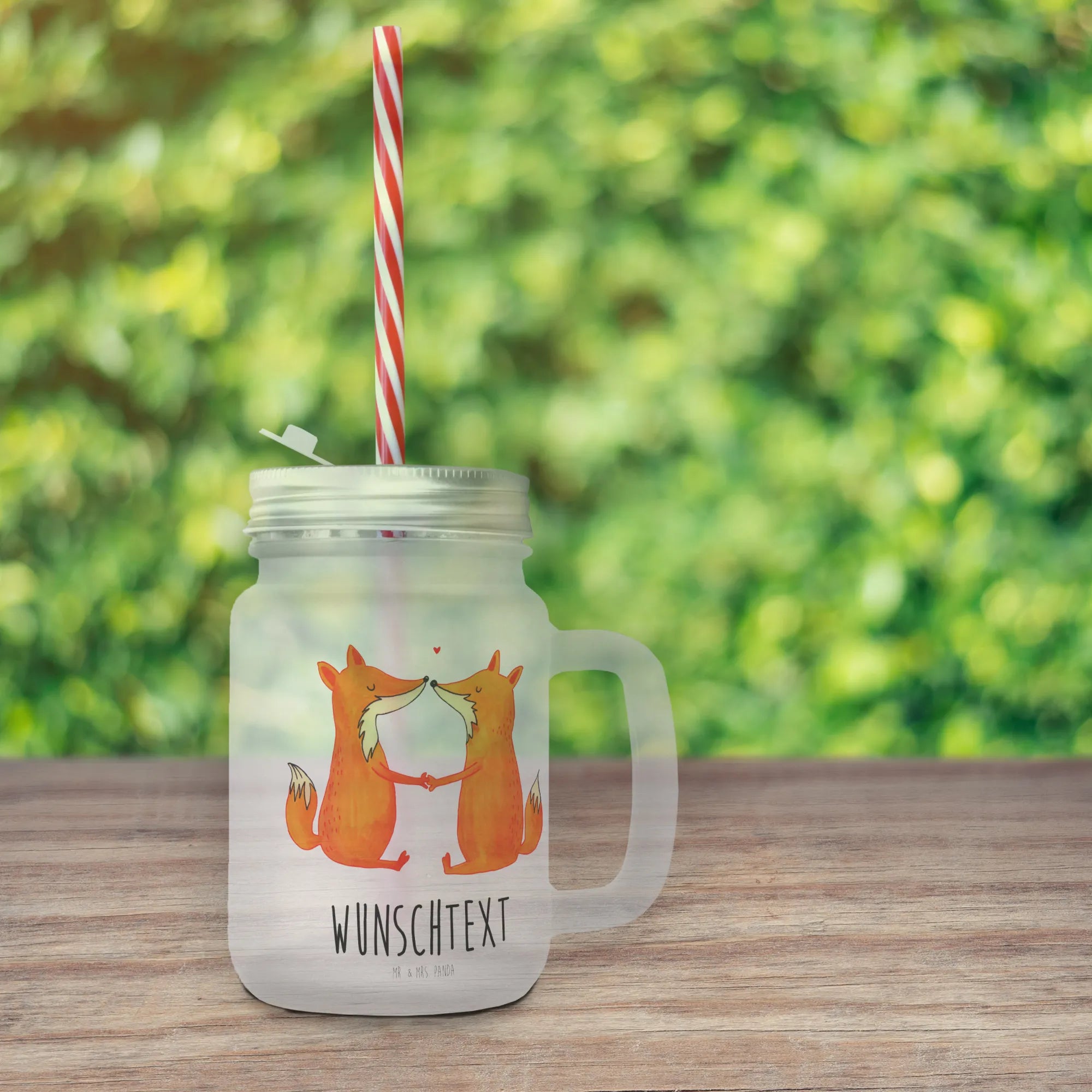 Personalisiertes Trinkglas Mason Jar Füchse Liebe