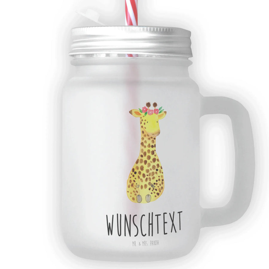 Personalisiertes Trinkglas Mason Jar Giraffe Blumenkranz