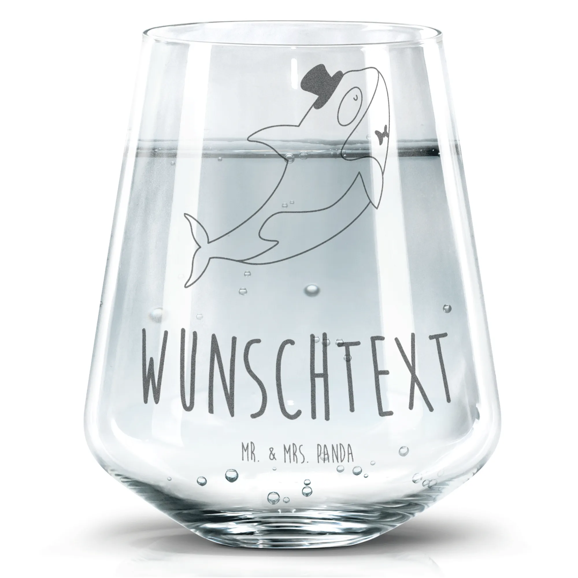 Das personalisierte Trinkglas im Orca Zylinder Design von Mr. & Mrs. Panda ist nicht nur ein wunderschönes Accessoire für jede Feier, sondern auch ein bedeutungsvolles Geschenk für alle Meerestiere-Fans. Mit seiner hochwertigen Lasergravur zeigt das Glas einen lächelnden Orca, der einen Zylinder auf dem Kopf trägt – einfach bezaubernd! Egal, ob zum Geburtstag, zur Hochzeit oder einfach, um jemandem eine Freude zu machen, dieses Trinkglas mit einem Fassungsvermögen von 400 ml ist perfekt für Wasser, Saft oder Cocktails.