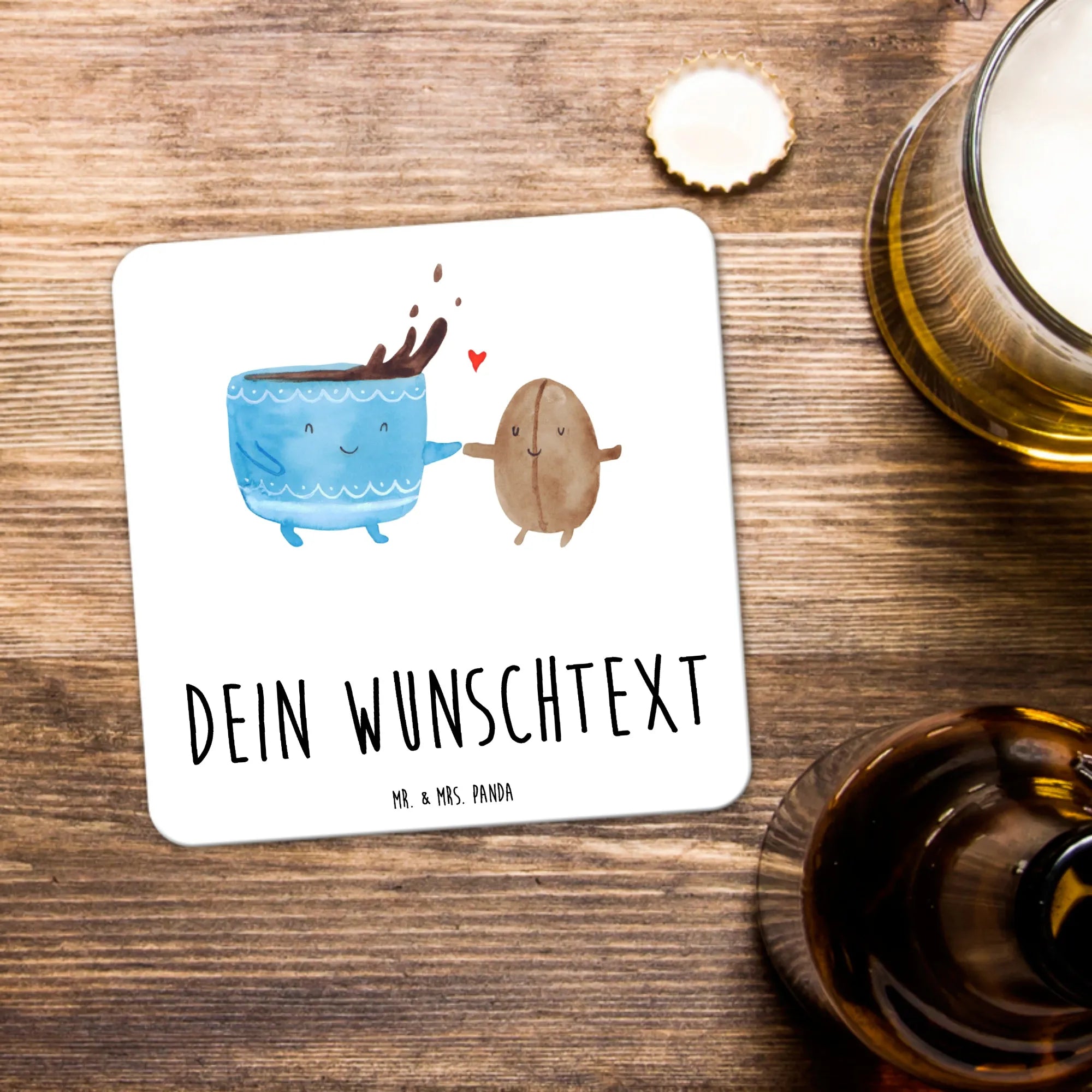 Suchst du das perfekte Geschenk für Kaffeeliebhaber? Dann sind die personalisierten Untersetzer mit dem fröhlichen Kaffee Bohnen Motiv von Mr. & Mrs. Panda genau das Richtige für dich!