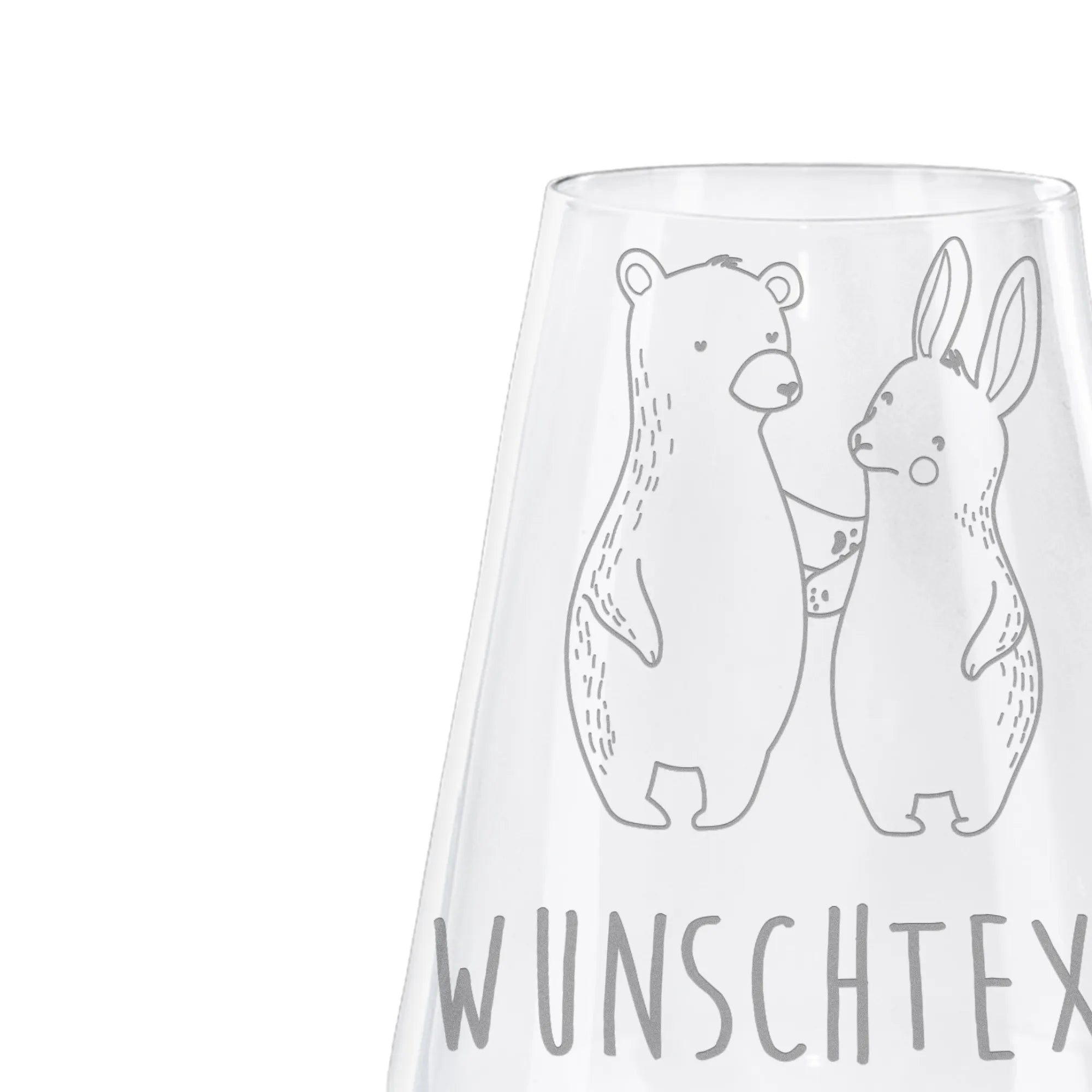 Personalisiertes Weißwein Glas Bär und Hase Umarmen