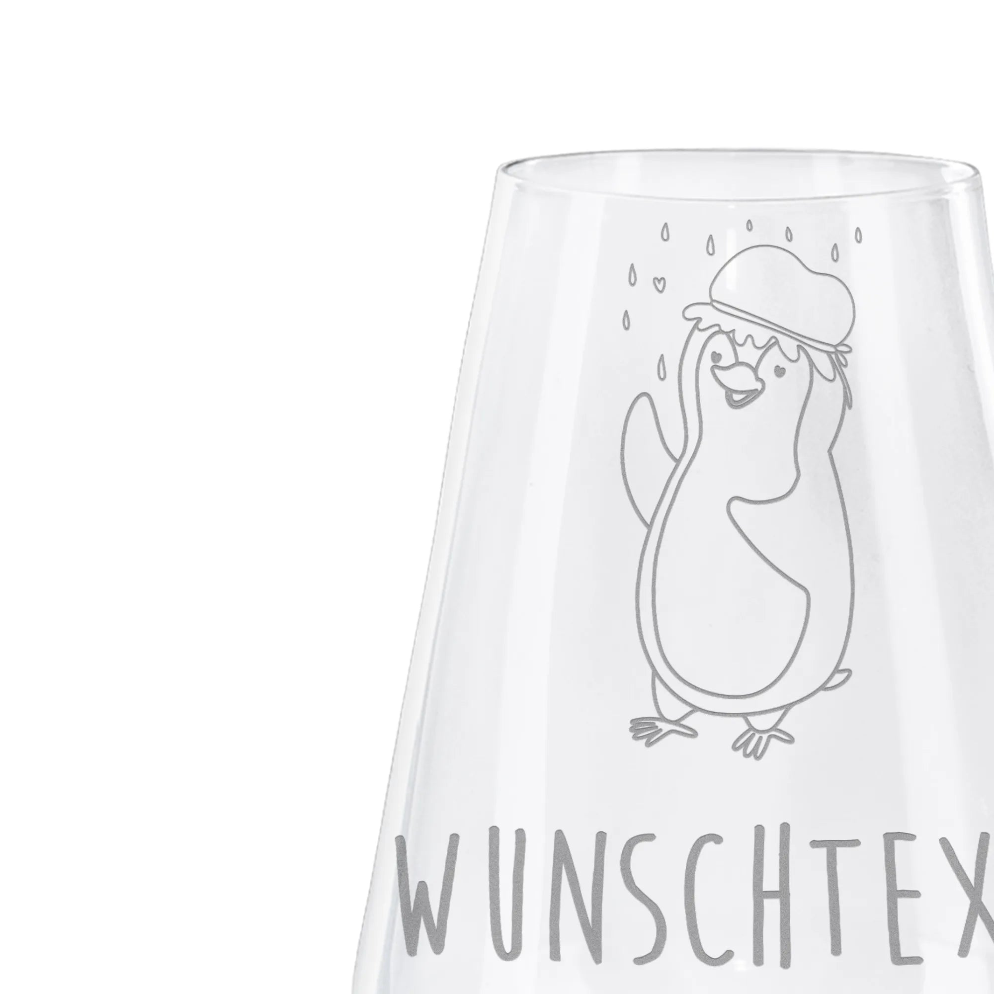 Personalisiertes Weißwein Glas Pinguin Duschen